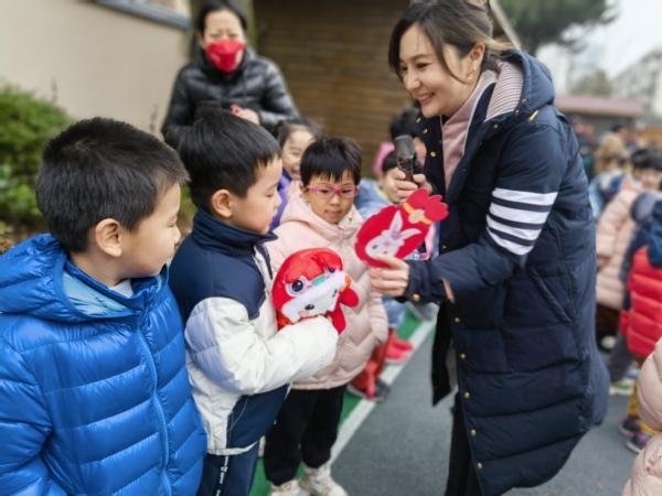 开学伊始,万象更新,初春的暖意已悄然来临,爱国主义情怀也在宝贝们的心中生根发芽,“小小心愿,冉冉升起”,在嘹亮的国歌声中,孩子们注视着国旗冉冉升起,心中自豪感满满。保健医生用谈话、交流的的方式从安全、卫生等关爱着孩子的健康。陈园长和宝贝们互动送“玉兔”,还把新学期暖暖的祝福送给宝贝们,温暖的话中承载着关爱与期望 ,希望宝贝们兔年与健康同行、与快乐同行、与智慧同行!