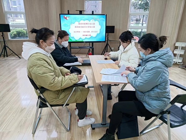 为了进一步提升南航幼儿园教研活动的质量,也充分发挥我园省示范幼儿园的辐射和带动作用,推动教师教育教学能力的快速提升,2021年12月16日,我园由赵莉、王若松、冯川宁、张莉、四位区学科带头人和幼儿园骨干教师赴江宁区爱博尔幼儿园进行现场教研帮扶指导。帮扶小组一行对幼儿园环境、教学、游戏相互分享教学理念、双方真诚沟通,开启友好合做,携手结对园一起成长!