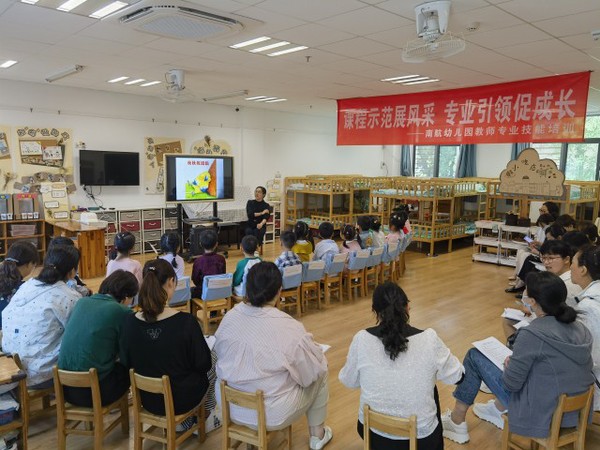 为进一步提升办园品质,加大园所间沟通与交流,促进资源共享,4月20日,我园与南京市石鼓路小学附属幼儿园从“绘本阅读”课程送教指导、语言教学研讨、专业讲座等方面开展结对共建活动。参与此次活动有江苏省“五一”劳动奖章获得者、南京市石鼓路小学附属幼儿园园长王静,南京市语言教研组组长、石鼓路小学附属幼儿园业务园长陈薇薇,南京航空航天大学后勤集团幼教中心主任陈慧云及全体教师。