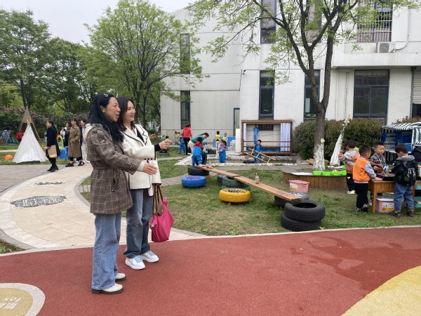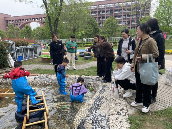 随后,老师们重点观摩了特色游戏:山坡上的娃娃家、小舞台上的演出、沙水游戏、艺术创作等游戏,充分利用了园所户外场地大的优势,最大化发挥了环境中的教育资源,处处彰显了幼儿游戏的自由、自主、愉悦、创造,充分践行了“生活即教育”的陶行知教育理念。