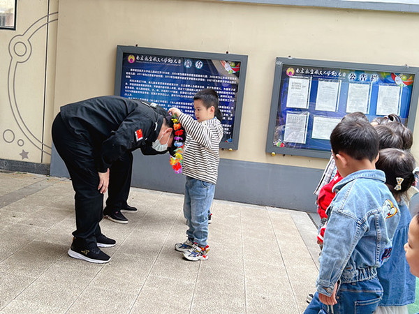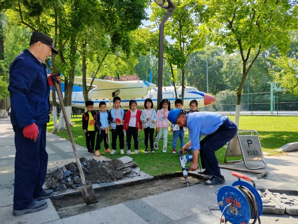 各班级幼儿代表在老师的带领下,走进身边各行各业劳动者的工作现场,观摩了他们的劳动过程。他们分别来到了南航后勤集团各个中心及校保卫处,近距离地感受劳动者的艰辛和忙碌。