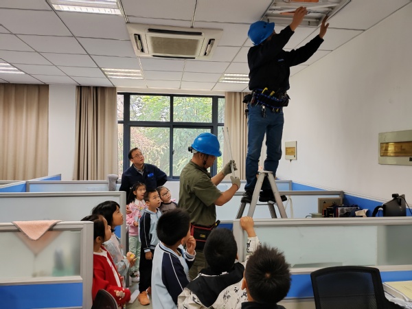 办公室是用来做什么的?这里的叔叔阿姨是干什么呢?他们办公室里都有什么呢?孩子们带着研学单和无限的好奇来到后勤集团办公楼。孩子们边走边看边问,对一切都充满了好奇,后勤集团综合办公室主任储老师通过图片、视频,耐心、细致的解答了孩子们的疑惑。原来办公楼里的伯伯、阿姨们每天工作很辛苦,他们协调着每个中心的各项工作,高质量保证了大学生哥哥姐姐们在学校的生活和学习。