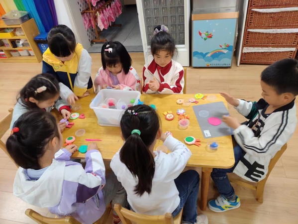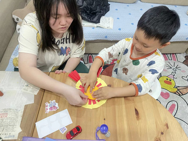 在了解劳动者的工作后,幼儿决定用自己的方式表达对劳动者的敬佩和感谢。小中大班的幼儿通过绘画、手工等方式用彩纸、黏土等材料自制“劳动勋章”,有的是独立创作,有的是亲子合作制作,他们将对劳动者的敬爱之情融进了作品中。