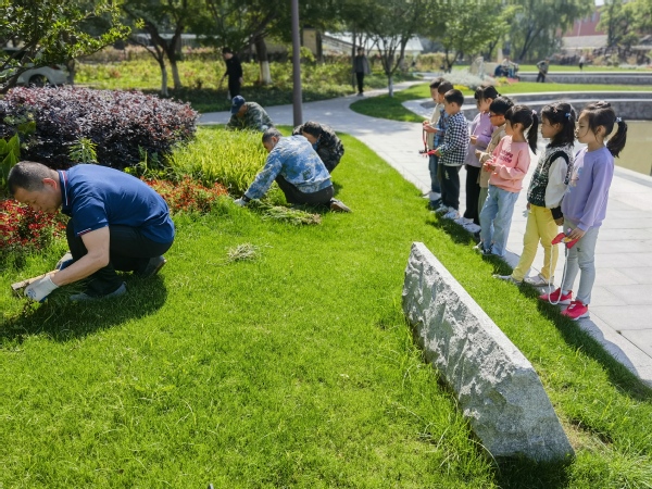 水电与维修服务中心的工作人员向幼儿展示了如何修理破损地砖和坏掉的灯管。在校园服务中心幼儿看到伯伯和叔叔们在太阳下动手清除杂草、修剪道路两旁的绿植,电锯的嗡嗡声不绝于耳…… 他们也化身小小除草员动手感受师傅们的劳动。在车辆运输中心,幼儿观摩了停车场和修理部的环境,以及司机叔叔开校车、洗校车及维修汽车的工作……