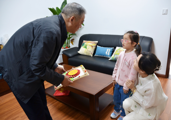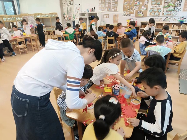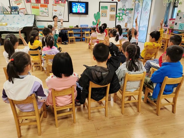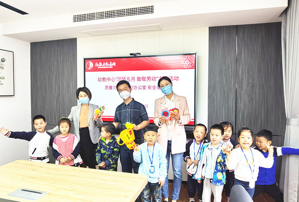 在幼儿园里,幼儿在老师的带领下向辛勤的老师们、保安叔叔、厨房的伯伯和阿姨们,表达了爱的心意,在这个温情的劳动季,孩子们也给他们送上了“劳动勋章”。