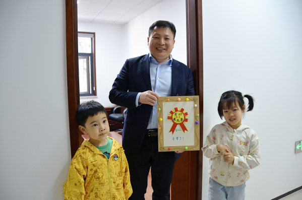 观摩活动结束后,幼儿用稚嫩的语言,表达着对辛勤劳动工作者的感谢;用他们的小手为身边那些默默无闻的工作者献上他们自己制作的特别的“劳动勋章”,将特别的爱传递给那些在自己岗位上无私奉献的特别的劳动者们,真情表达对他们的感激和敬爱之情。