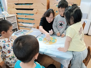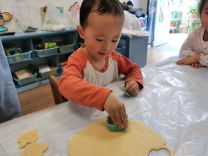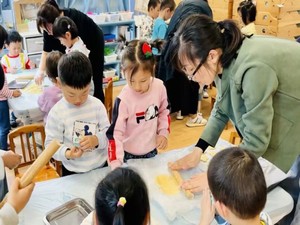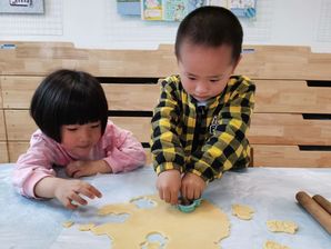小班的老师带着宝贝们一起制作航空小饼干。在家长志愿者的协助讲解下幼儿将面粉、黄油、糖粉、水混合,奋力揉呀揉,揉成了神奇的面团,再用擀面杖把面团擀成面皮,最后用具有特色的航空磨具,压出饼干的形状,放入烤箱进行烘烤。回家后与妈妈分享品尝亲手制作的美食。
