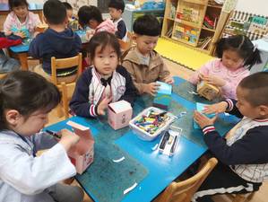 中班幼儿制作创意无限的爱心盲盒,把对妈妈的爱满满地全部奉上。宝贝们先亲手制作纸盒,他们认真细致地画着、剪着、粘着……一个个立体精美且私人订制的盒子在他们们的巧手下,完美呈现。宝贝们还设计绘画了四张爱心券,分别是按摩券、跑腿券、万能券、家务券。盲盒完成后,带回家和妈妈一起互动游戏,想象一下,亲爱的妈妈抽到爱心券后,看着宝贝为自己服务的忙碌身影,是多么惊喜,多么感动,多么快乐的一件事啊!