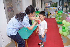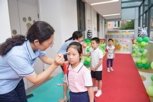 “朱砂启智勤为径,学海无涯求新知”,点朱砂俗称“开天眼”,寓意祝福孩子眼明心亮、一点就通。活动现场,老师们亲自执笔,蹲下身为孩子们在额头正中间点朱砂。朱砂启智,为孩子们开启智慧之门,希望孩子们将来都能成为我国栋梁之才。