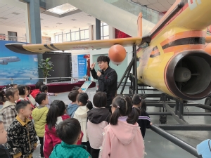 孩子们走进南京航空航天馆,开启了一场航空航天探索之行。一进入馆内,形形色色的航空航天器便牢牢抓住了孩子们的眼球,他们兴奋地穿梭在展品之间。讲解员耐心细致地讲解,从中国航空航天事业的起步,到如今的辉煌成就,从飞行器的基本分类,到南航在关键技术突破中的卓越贡献,孩子们听得津津有味,仿佛走进了一部鲜活的航空航天史书,对“三航”精神有了进一步的理解与感悟。