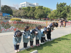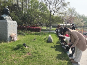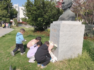 为了缅怀伟人,纪念传承,孩子们前往南京航空航天大学,祭扫航空教育家、中国科学院院士、南京航空航天大学教授陶宝祺雕像。在庄严肃穆的氛围中,教师代表讲述了陶宝祺院士的生平事迹,让孩子们深刻感受到老一辈科学家为航空航天事业无私奉献的精神。随后,孩子们手持自制的小白花,向雕像深深鞠躬,表达对陶院士及所有为祖国航空航天事业作出贡献的科学家们的崇高敬意与深切缅怀。
