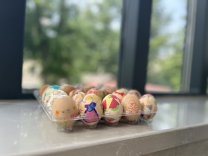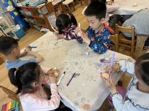 彩绘“夏蛋”寄童心:孩子们手握画笔,在蛋壳上勾勒七彩花纹,瞧,夏日的云朵、漂亮的小花......将童真幻想与美好期盼注入一枚枚“夏蛋”。