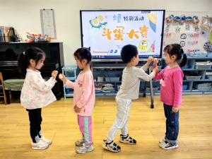 斗蛋比赛欢乐多:“我的蛋头最硬!”“看我的蛋尾能撞赢你!”孩子们两两结对,手握蛋宝宝展开“激烈角逐”。蛋头相击、蛋尾相撞,清脆的碰撞声中,欢笑声此起彼伏。获胜者高举“战蛋”欢呼,最后他们剥开蛋壳,分享这份立夏的甜蜜。