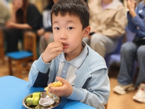活动伊始,家长们观摩幼儿生活活动。在轻柔的起床声中,孩子们自主穿衣穿鞋,动作虽显稚嫩,却满是努力与独立。午点时,洗手、用餐全程有序,家长们透过日常缩影,在细微处读懂了“生活即教育”的深意,感受到幼儿园将生活变成“成长课堂”的用心,欣慰之情溢于言表。
