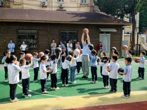 音乐游戏《快乐舞会》成为爱的“发声场”。中一班孩子们跟着旋律学做“邀请舞伴”“传递杯子”等动作,转身牵住妈妈的手,在欢快节奏中俏皮互动。一个个活泼的身影、一张张灿烂的笑脸,化作对母亲最纯真的爱意表达,温馨的亲子时光在笑声中悄然流淌。