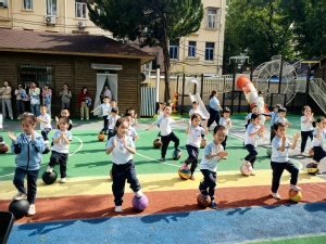 操场上,器械操展示环节活力开启。随着动感的节拍,孩子们手持器械面向妈妈们整齐舞动,伸展、跳跃、踢腿间充满朝气,动作中透着专注与自信。阳光下,家长们的镜头频频闪烁,将孩子们朝向妈妈们展演的活力瞬间一一定格。