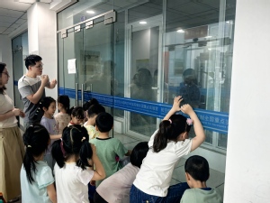 在“航空航天结构力学及控制全国重点实验室”的微纳尺度实验区,孩子们通过听介绍了解到科研人员如何利用精密仪器探索微观世界,初步了解精密仪器在生活中的广泛应用;在高性能计算机房,实验室老师将计算集群比作“超级电脑军团”,向孩子们介绍了它们如何高效协同工作,展现出强大的算力。孩子们了解到所有的科研硕果都是科研人员以智慧为笔、汗水为墨的辛勤耕耘。