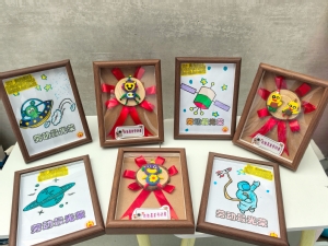 大班幼儿用彩纸、黏土等材料通过绘画、捏塑的形式精心制作“劳动最光荣”美术作品,将对科技工作者的向往与崇敬融入每一处细节,表达对科技工作者的真挚祝福。