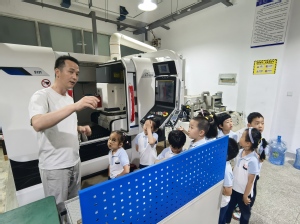 踏入无人机研究院的总装厂房,南航自主研发的长空、飞鹰、鸿雁系列无人机便牢牢吸引住孩子们的目光。孩子们一边聆听讲解员讲述南航无人机从无到有的艰辛探索历程,一边惊叹于不同机型的独特性能与广泛用途。当听到科研人员为攻克技术难题日夜奋战的故事时,孩子们的眼神中满是崇敬。接着,孩子们依次参观复材车间、钣金车间和机加车间。最后孩子们参观了“中小型无人机工信部重点实验室”,看到陈列的精密仪器时,孩子们心生敬仰,小声讨论着长大后也要成为像他们一样厉害的人。