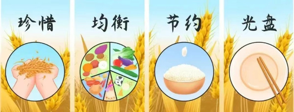 勤俭节约,珍惜食物,杜绝浪费。给孩子们树立一个良好的榜样。不仅要养成健康的饮食习惯,还要树立“节立一个良好的榜样。不仅要养成健康的饮食习惯,还要树立“节约光荣、浪费可耻”的思想观念,拒绝暴饮暴食。按需选购食物、按需备餐,提倡分餐。在盛饭时,也要以身作则,吃多少盛多少,杜绝浪费。在家里进一步帮助孩子养成“光盘”的好习惯,让我们同心协力,创造和支持文明饮食新风的社会环境和条件,传承优良饮食文化,树健康饮食新风。
