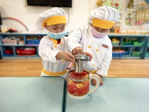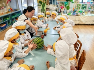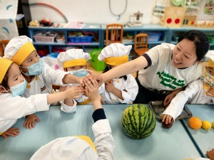 芒种催熟了满园鲜果,也开启了小班萌娃的食育之旅。孩子们化身“小小调饮师”,洗净切块、调配果茶,西瓜的甜、柠檬的酸在杯中交融。“我的果茶最香甜!”“快来尝尝我的创意饮品!”分享的喜悦与果香交织,在动手实践中感受自然馈赠的美好。