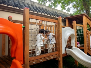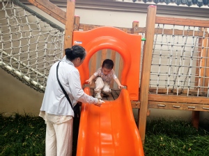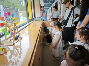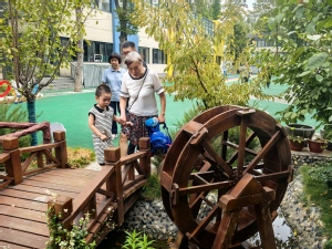 游戏后,萌娃们开启了幼儿园“探索之旅”。幼儿园的每一处精心设计的区域都让孩子们眼前一亮。他们或在滑梯上尽情玩耍,或围着水车观察,在亲手触摸、亲身感受中,慢慢熟悉幼儿园的每一个角落,对未来的幼儿园生活充满期待。