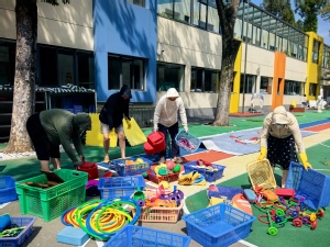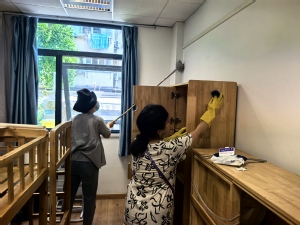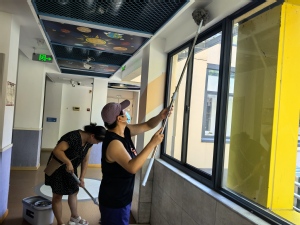 “卫生无死角,安全有保障”是环境清洁工作的重要准则。全体教职工分工协作,对幼儿园室内外进行全面清洁:从教室的桌椅、门窗,到走廊的扶手、地面,再到盥洗室的各类设施,逐一擦拭消毒。