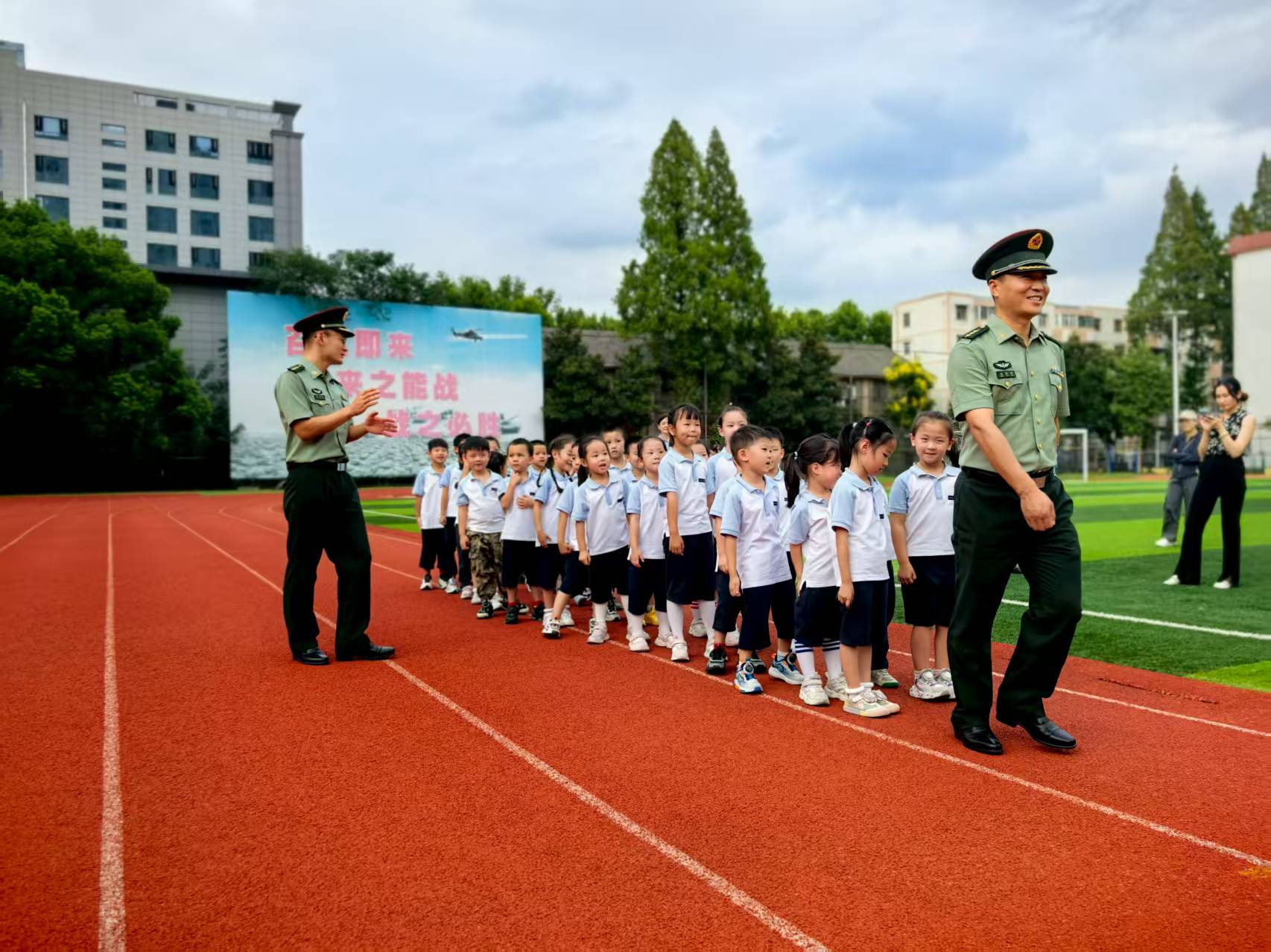 9月19日,大班幼儿走进中国人民解放军陆军工程大学,开启“军营研学”之旅,近距离感受军营魅力,深化对祖国与军人的热爱。