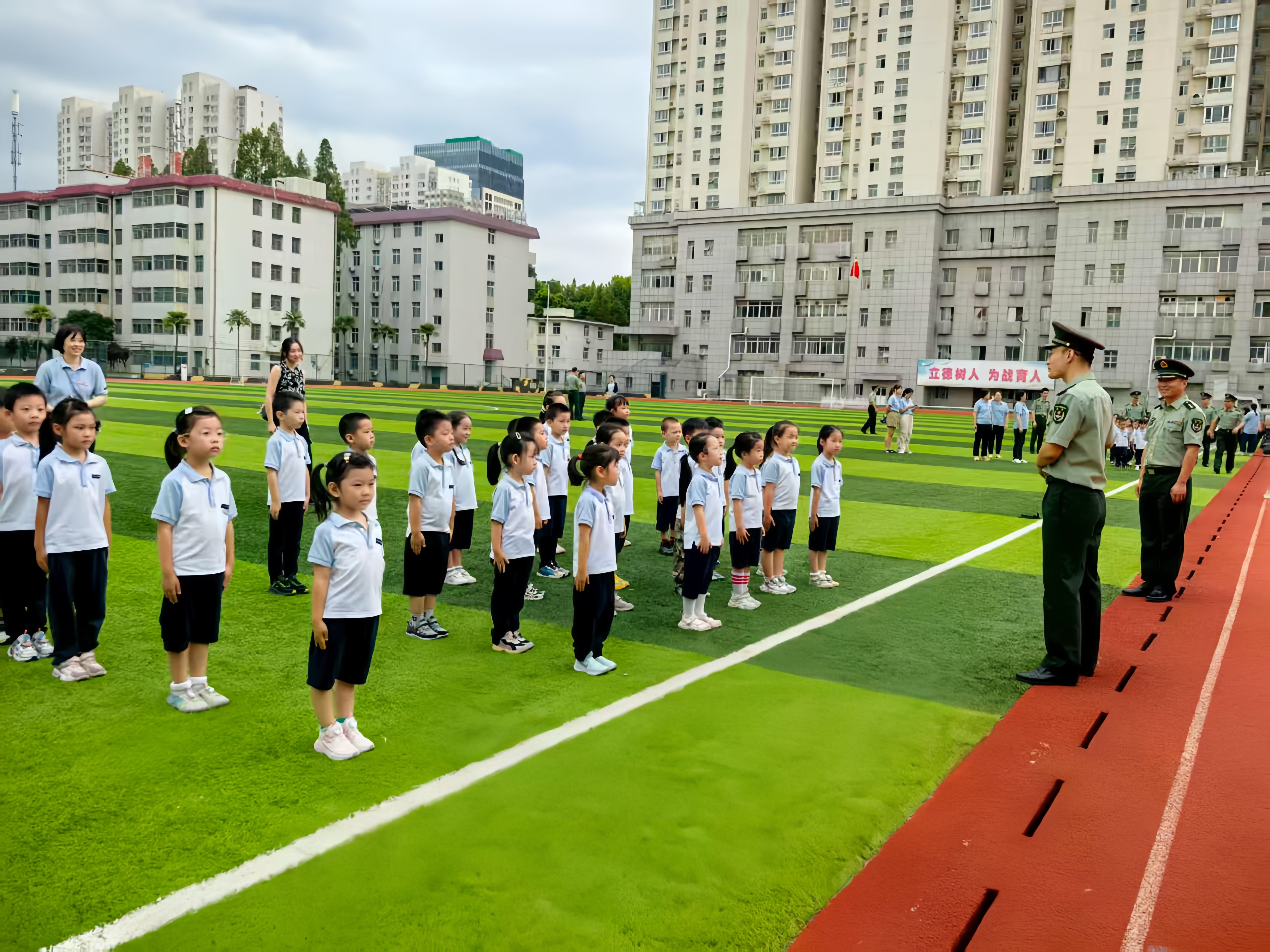 “立正!齐步走!向右转!”响亮口令响起,教官挺拔的军姿、整齐的步伐、坚定的眼神点燃孩子们的热情。孩子们跟着学习站军姿、走队列,挺直身板跟随口令迈步,在反复练习中感悟军人的纪律性与精气神。