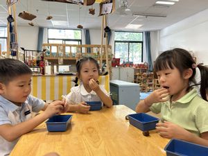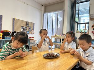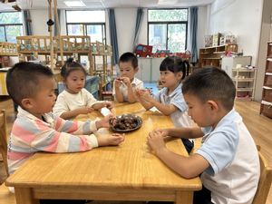 品尝栗子时,孩子们小心剥开栗壳品尝软糯中带着自然的清甜。孩子们你看看我、我看看你,分享这份独属于秋天的美味。