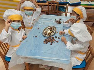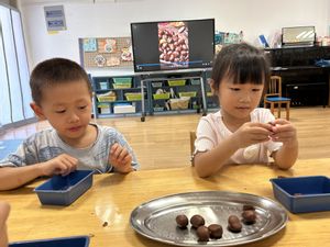 在美工活动中,孩子们发挥创意,用灵巧的小手捏出一个个栩栩如生的毛栗子,满是童真与巧思。