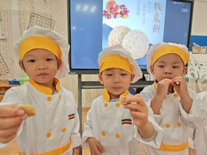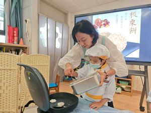 “栗子还可以怎么吃?”——“自制栗子饼”成为亮点。孩子们积极参与制作过程,从剥栗子、捣栗泥,到了解制作步骤,每一步都专注投入。当品尝到自己参与制作的栗子饼时,孩子们露出满足的笑容,连连称赞:“太香了!还想再吃!”