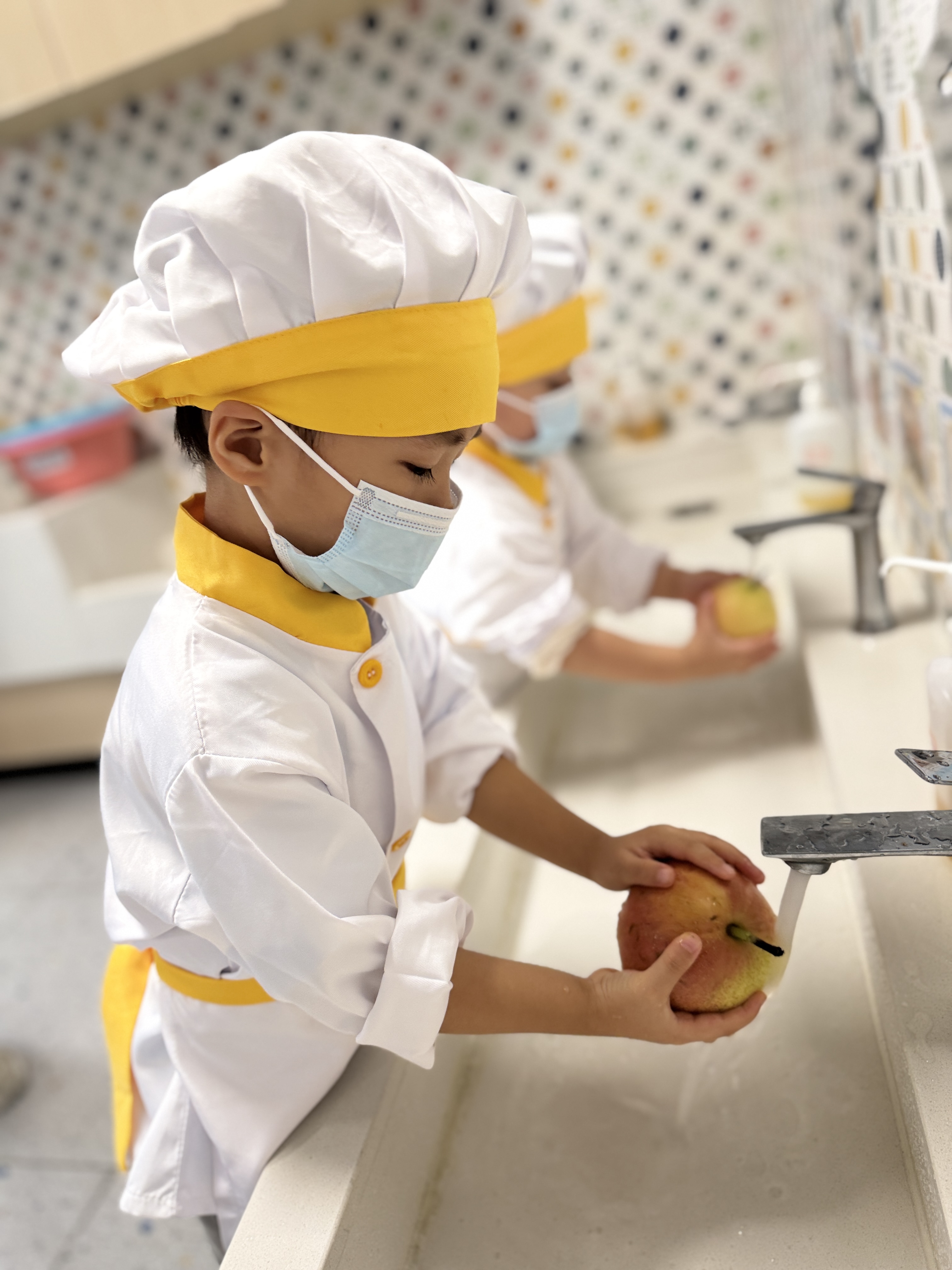 寒露时节,一碗热腾腾的“寒露汤”最能温暖身心。孩子们在老师的指导下学习制作这道暖汤。大家将梨子、银耳等食材一一清洗、泡发、削皮、切块……最后把准备好的食材放入锅中一同炖煮,静静等待香气四溢的时刻。