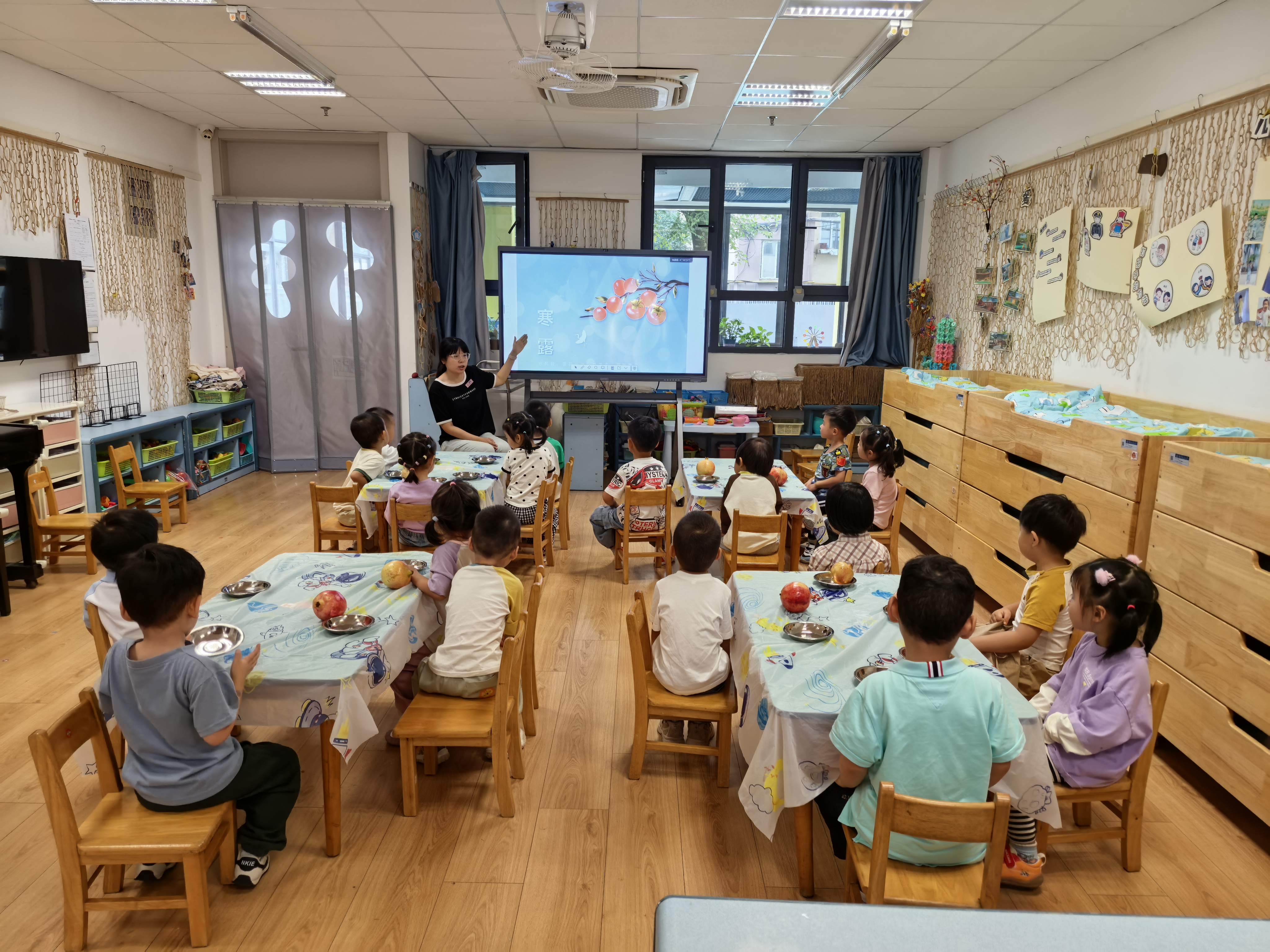 寒露时节的石榴最为香甜,挂满枝头,像一个个红彤彤的小灯笼。孩子们围坐在一起,仔细观察石榴的外形,触摸果皮,你一言我一语地分享自己对石榴的印象。