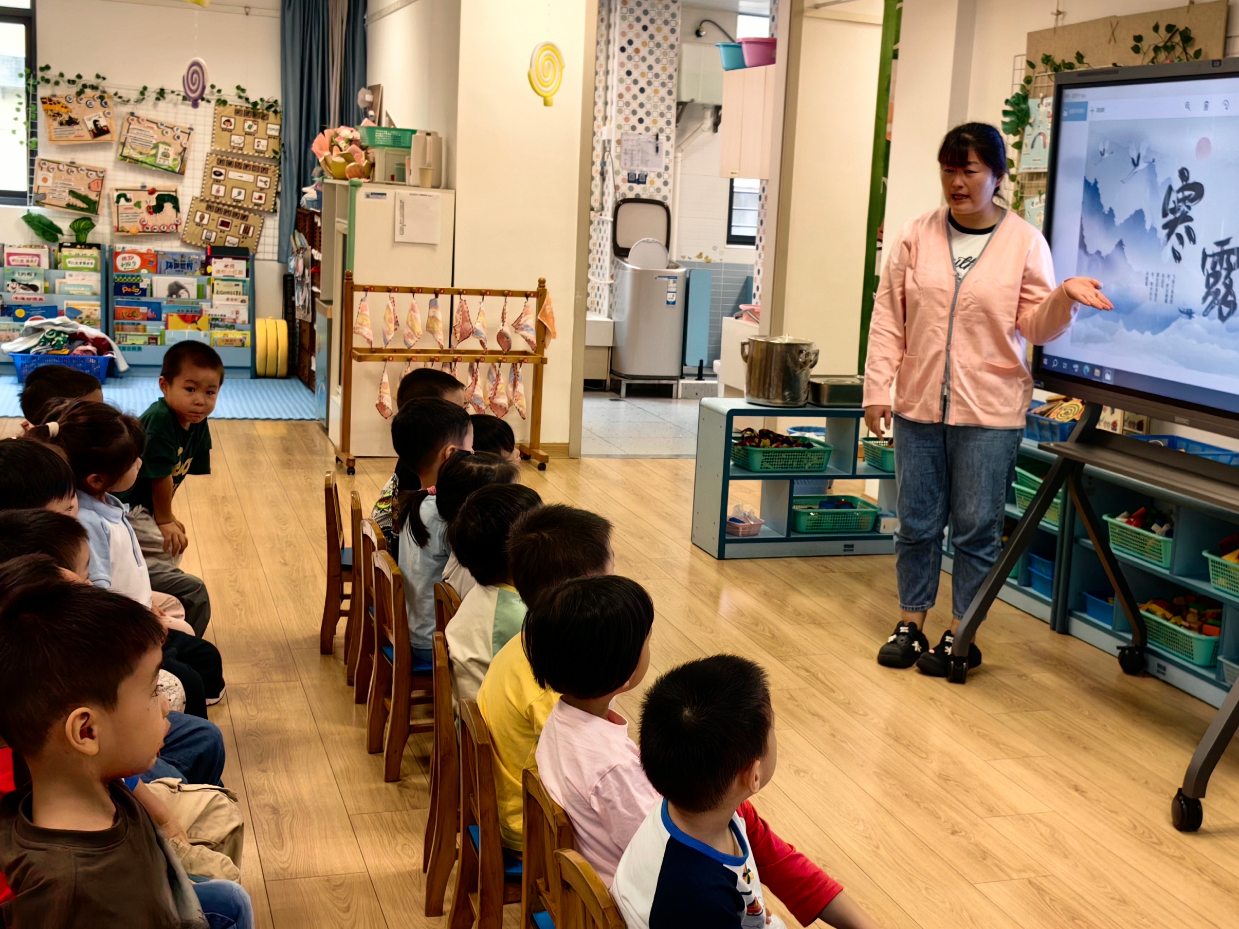随着寒露的到来,最明显的变化就是天气逐渐转凉。老师们带领孩子们一起探讨这个节气的特点,不仅讲解了天气的转变,还介绍了寒露期间的物候特征,让孩子们在交流中了解相关的传统习俗。