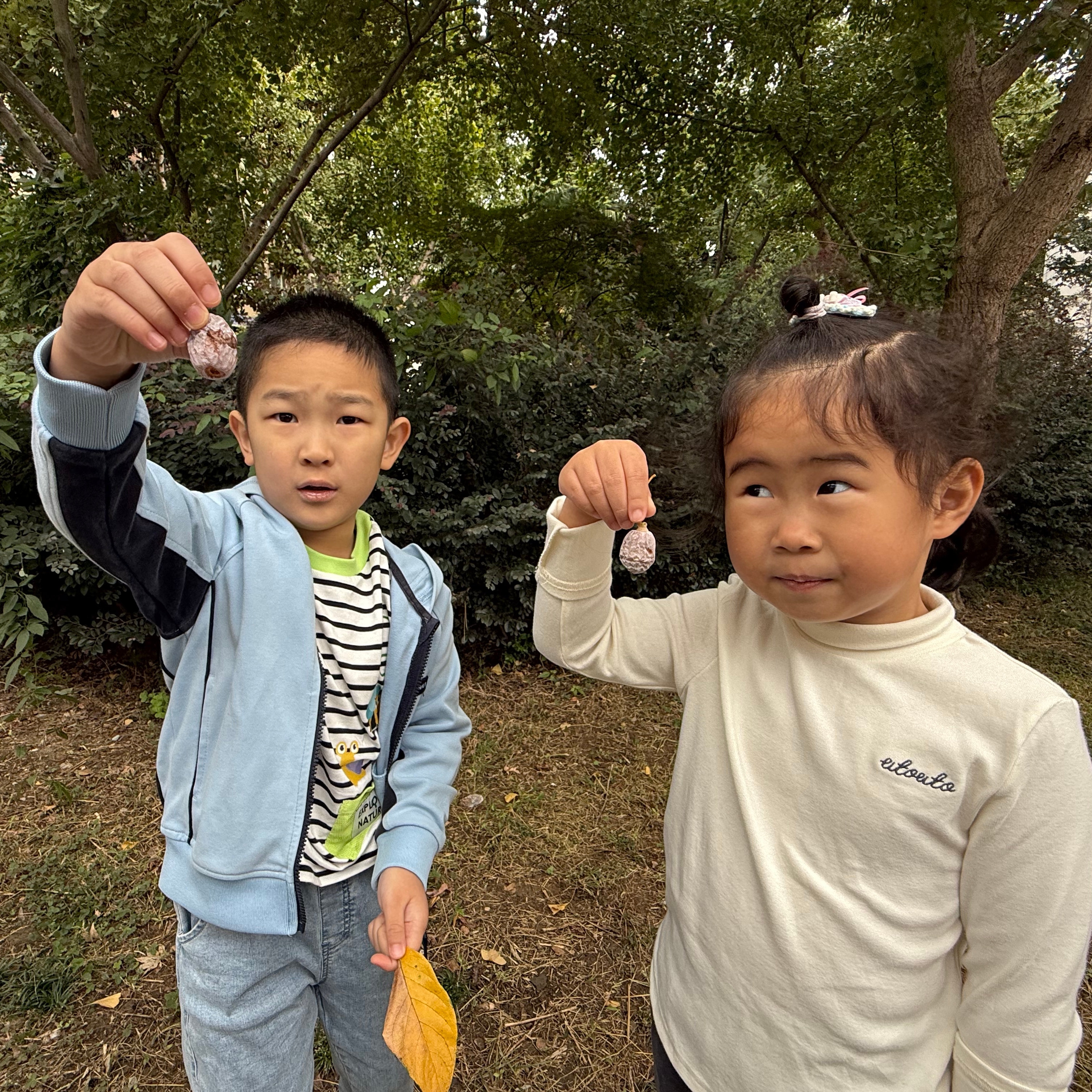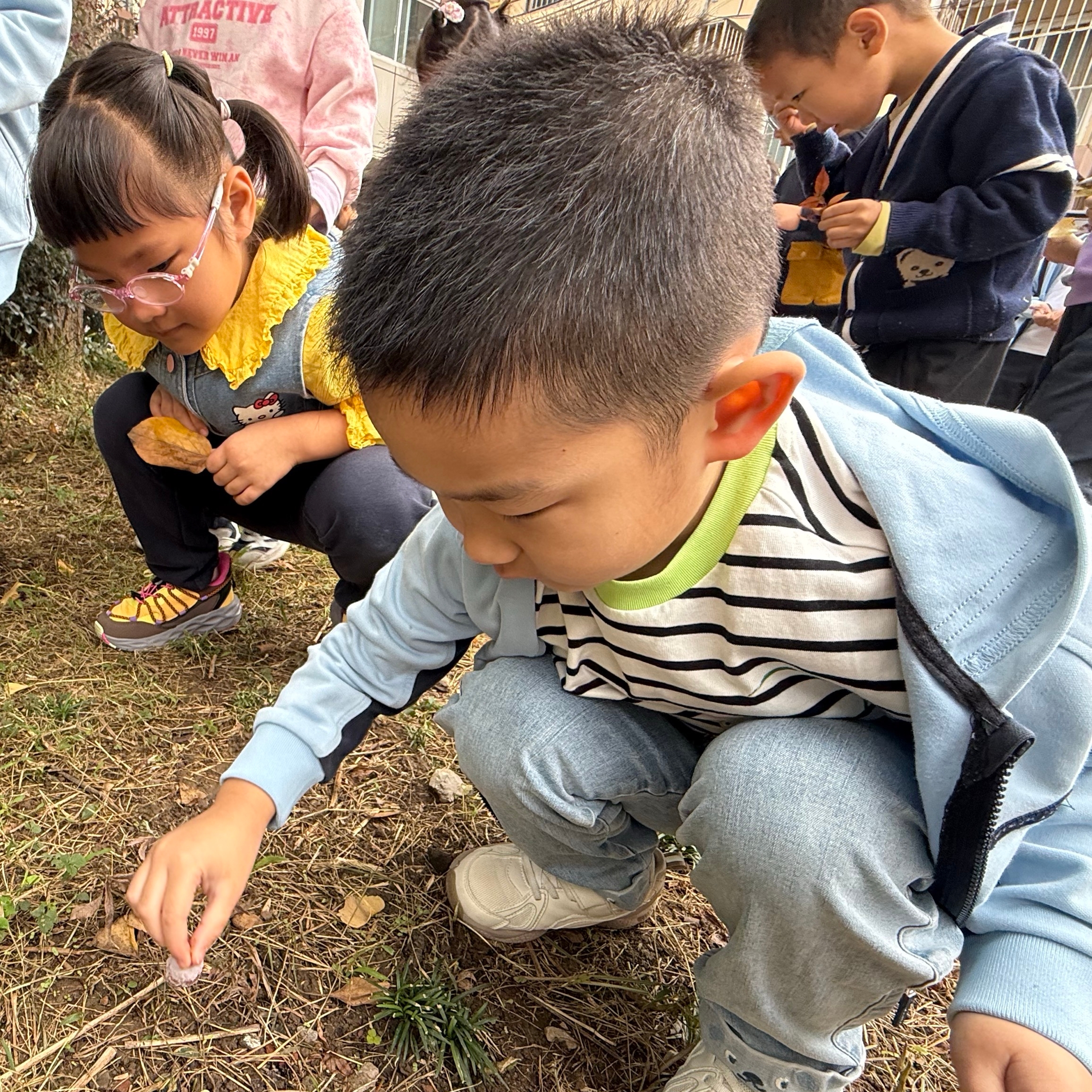 寻自然:秋天是收获,也是播种的季节。孩子们和老师一起走进草丛、树下、落叶堆,寻找各式各样的种子,探索“种子的旅行秘密”,了解它们如何乘风、借物,落地新生。