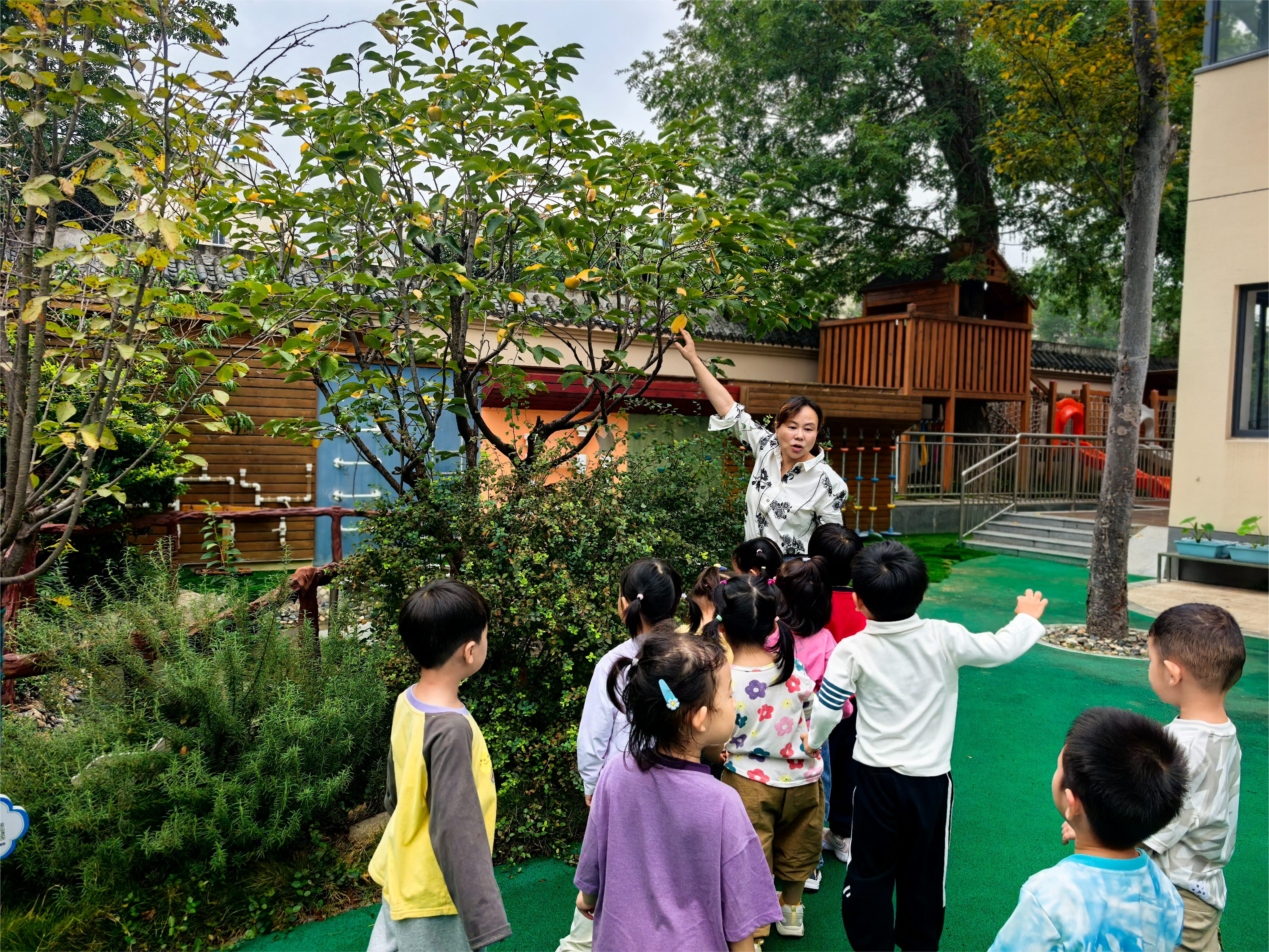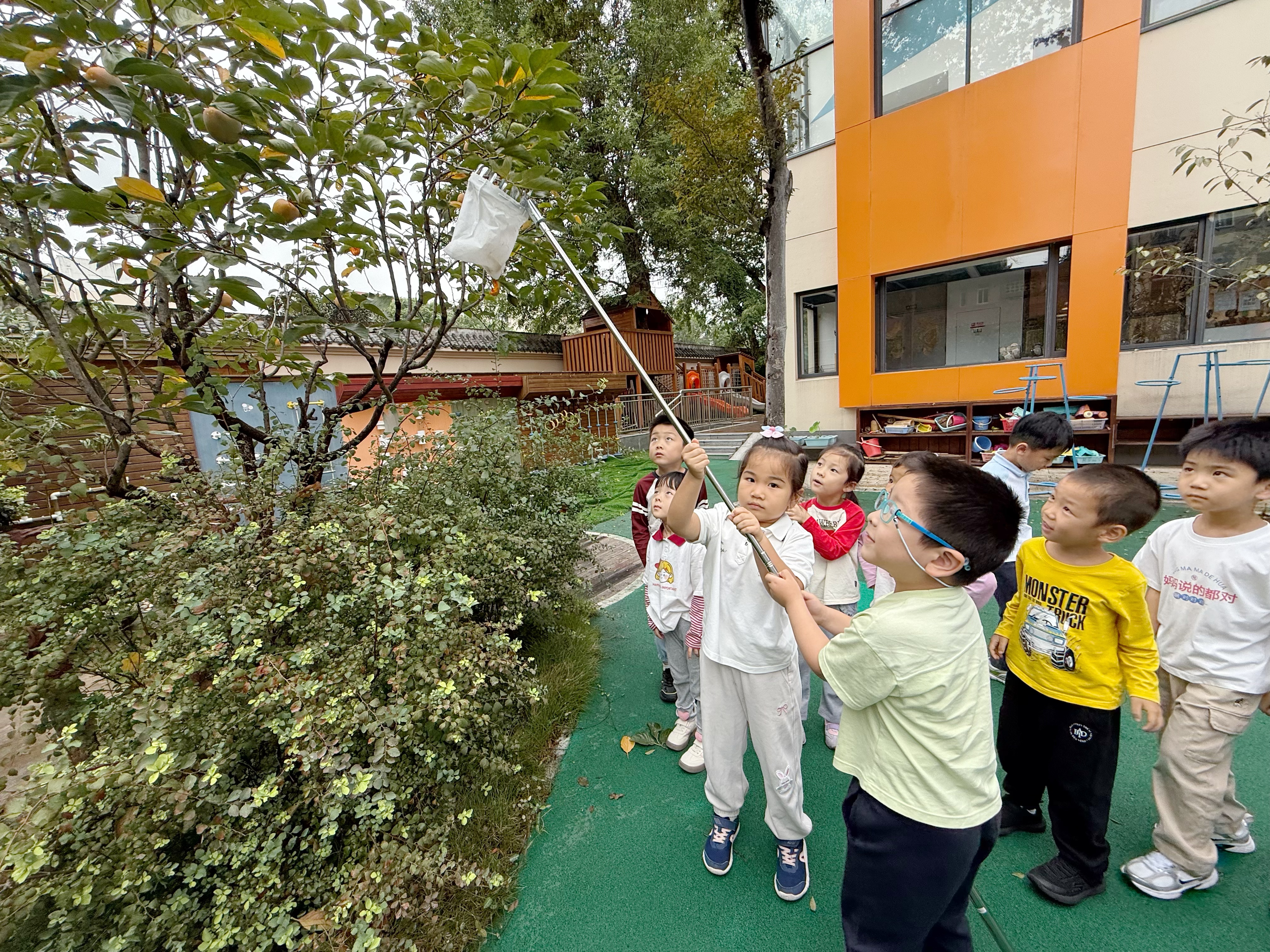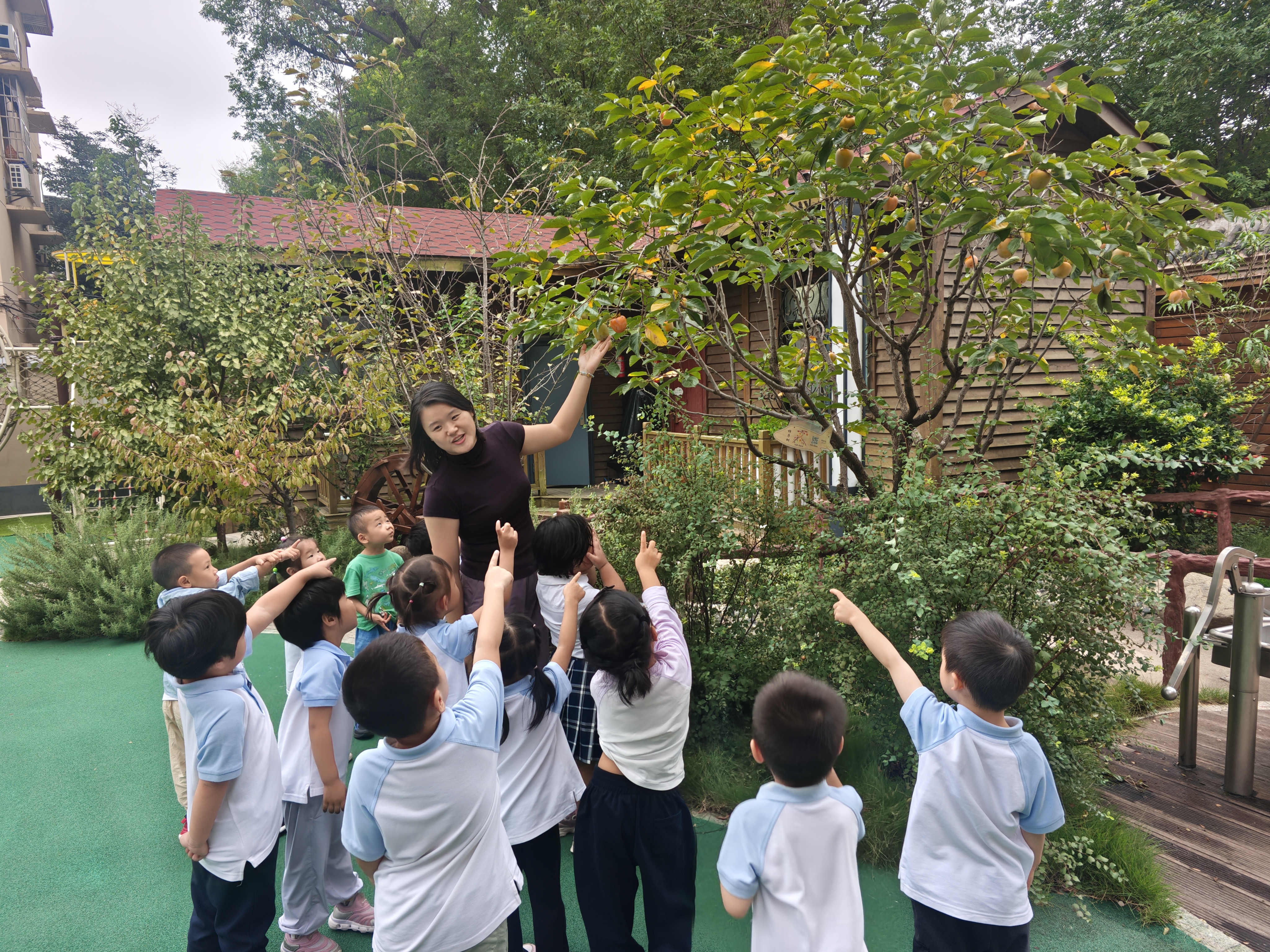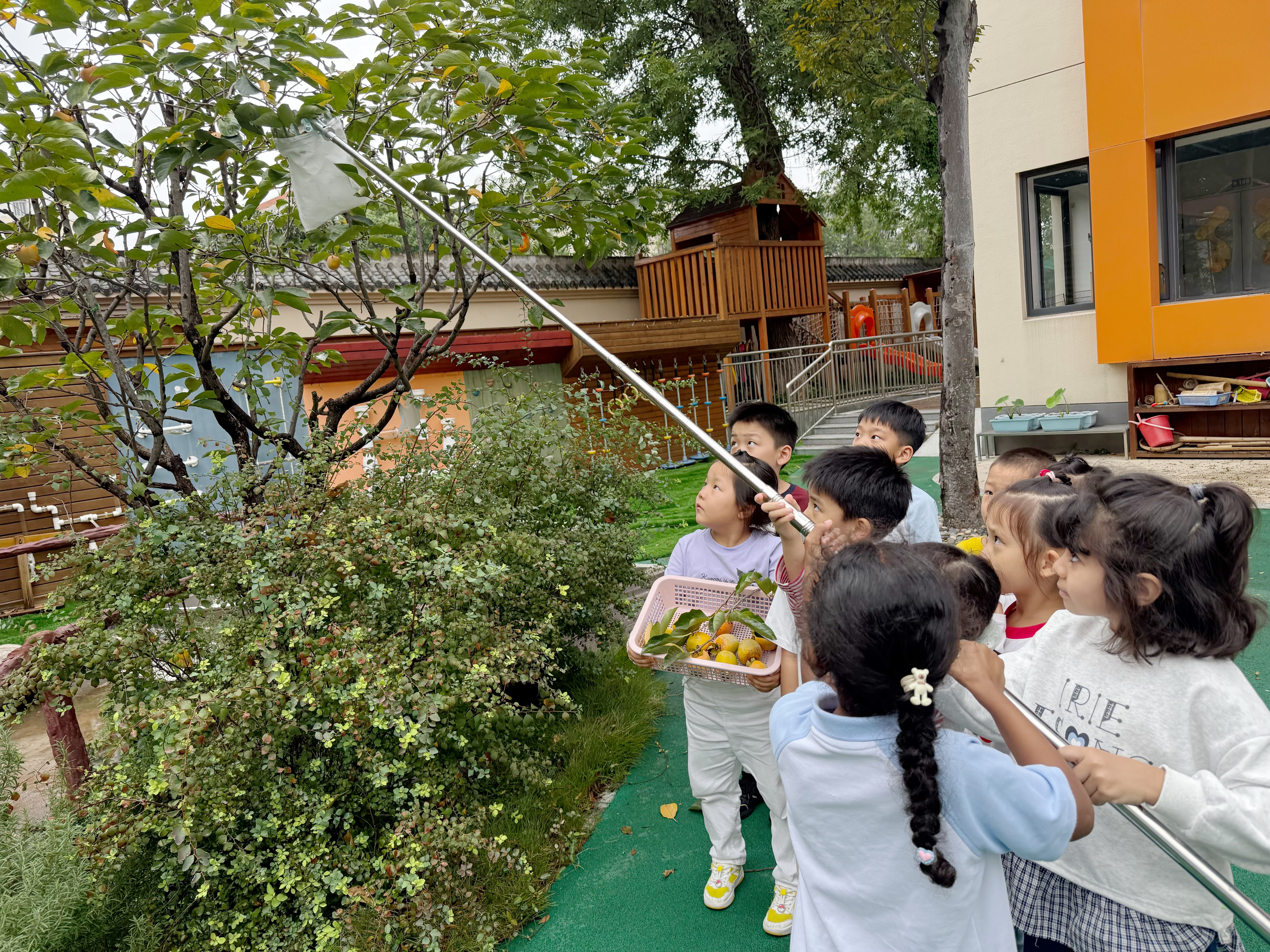 幼儿园里的柿子熟透了,橙红的果实挂满枝头,点亮了整个秋天。孩子们踮起脚尖,仔细观察,和老师一起回顾了柿子从开花到结果的生长过程。在老师的帮助下,他们亲手摘下一个个像“小灯笼”般的柿子,丰收的喜悦洋溢在一张张笑脸上。