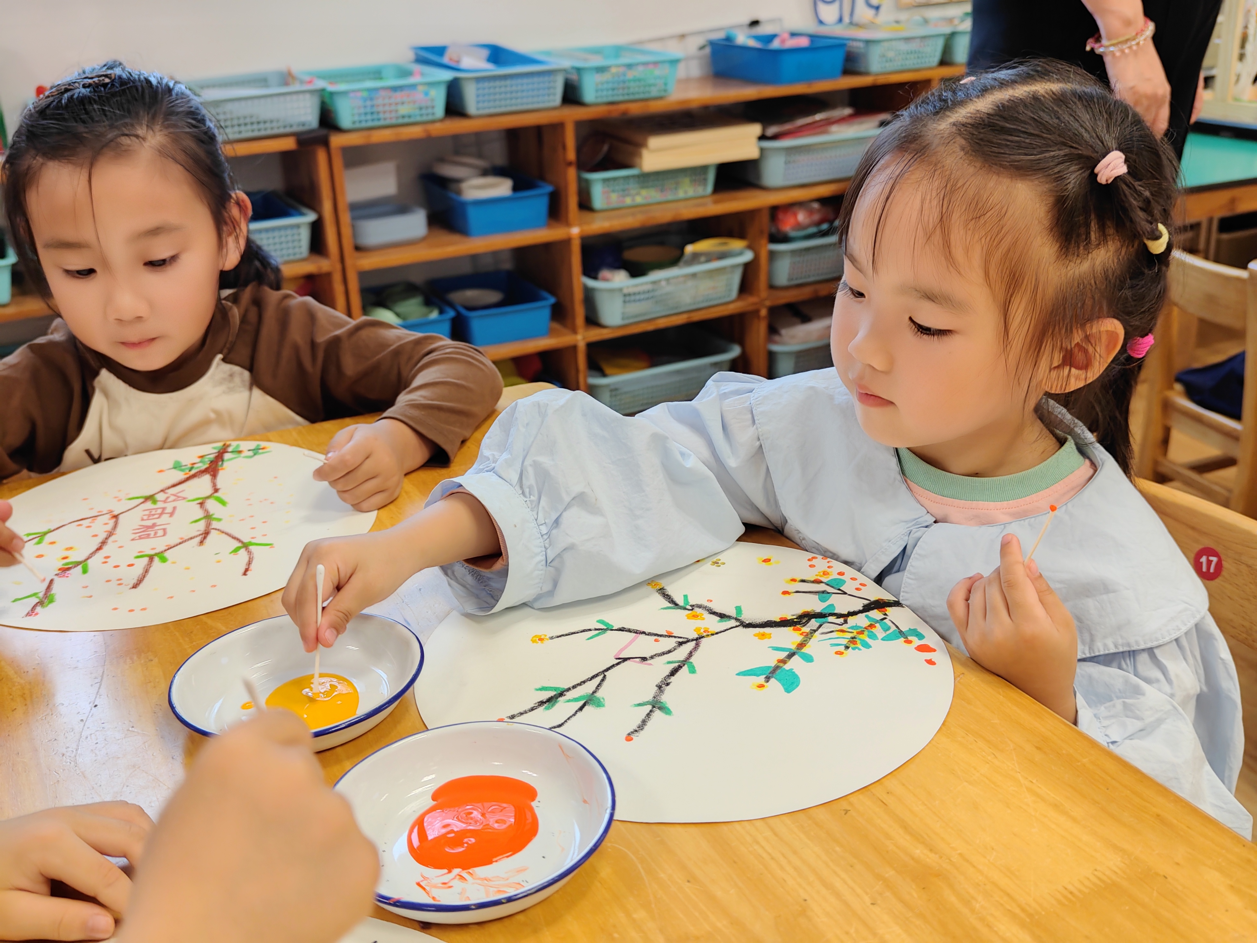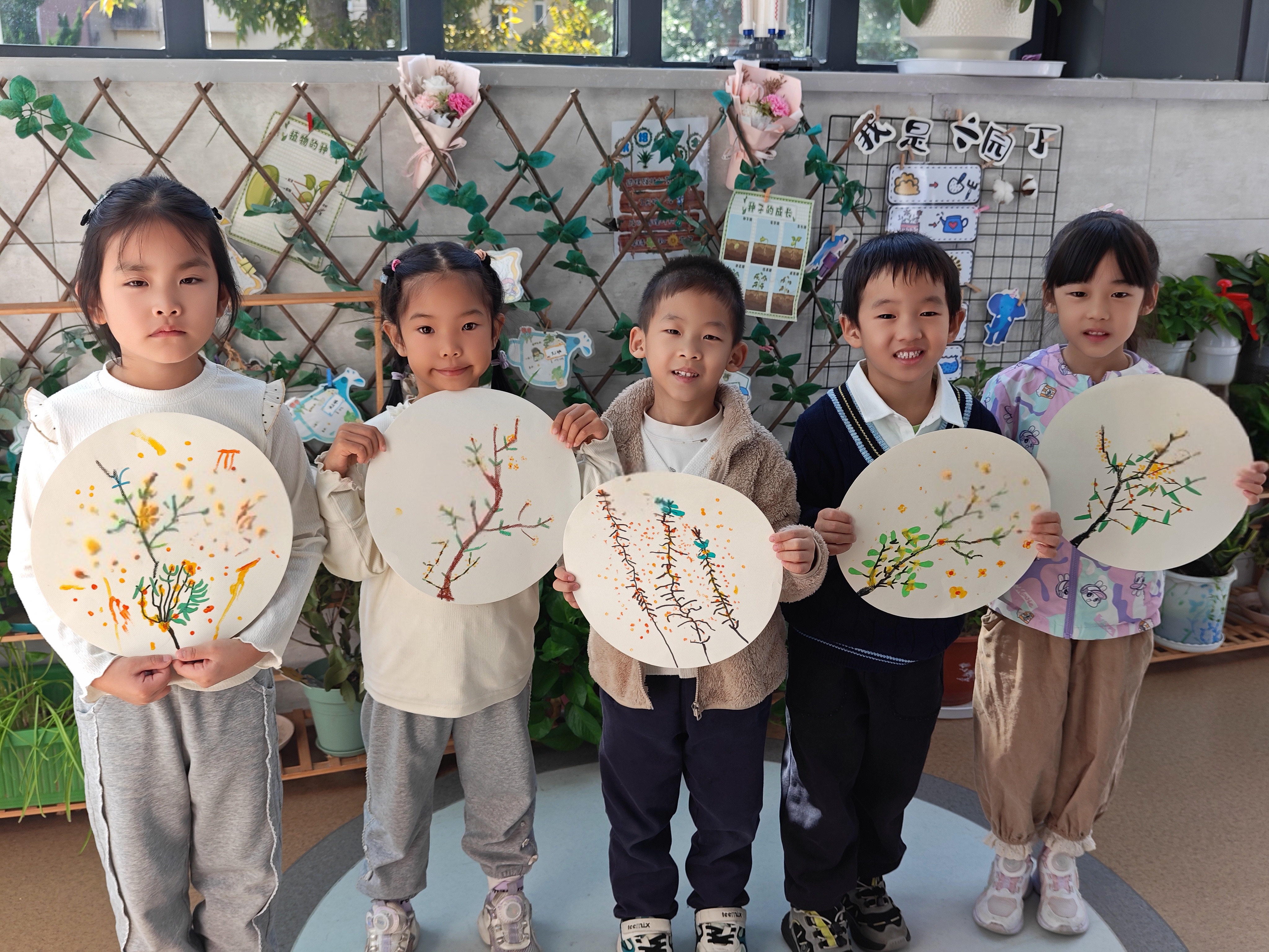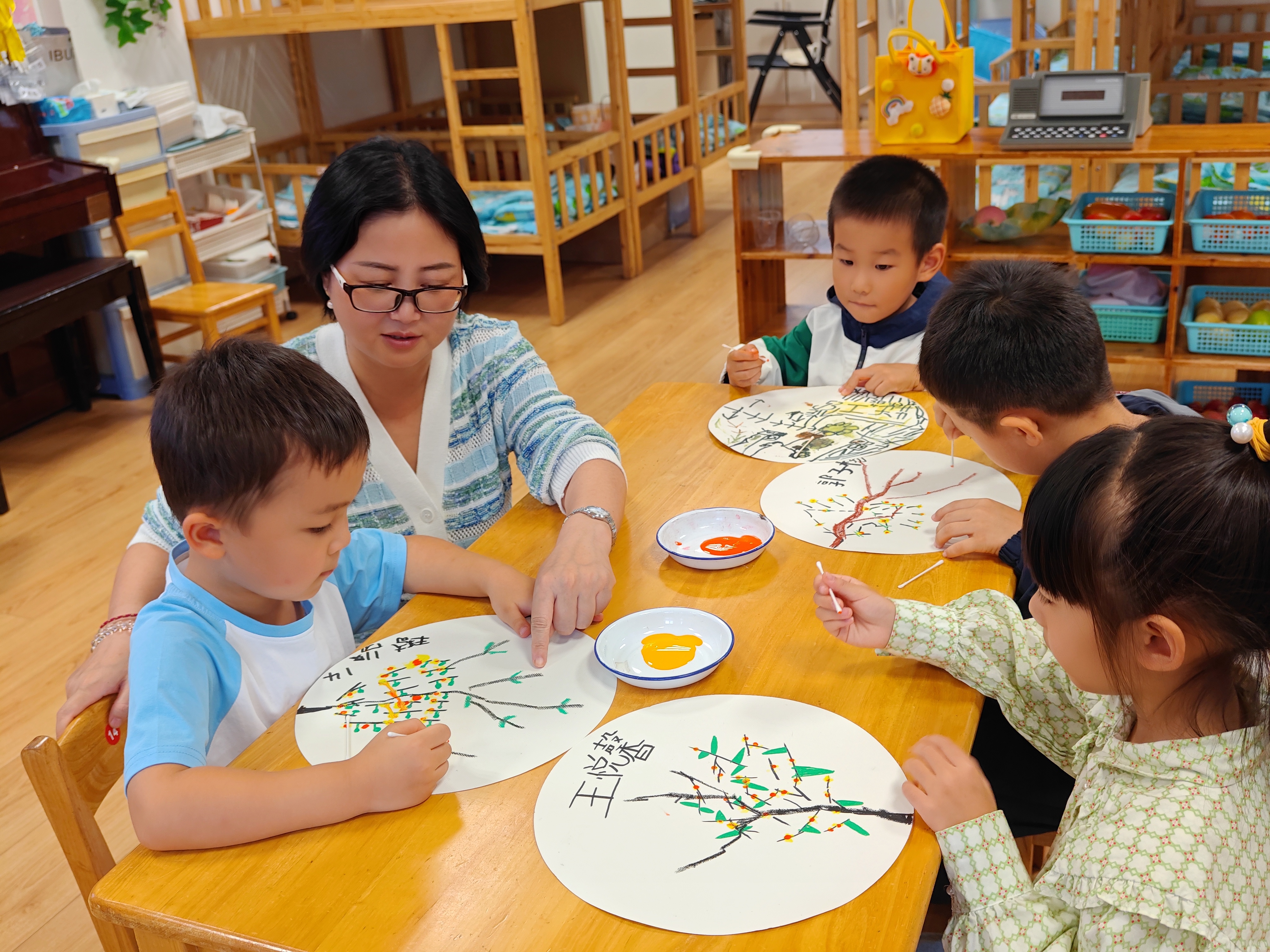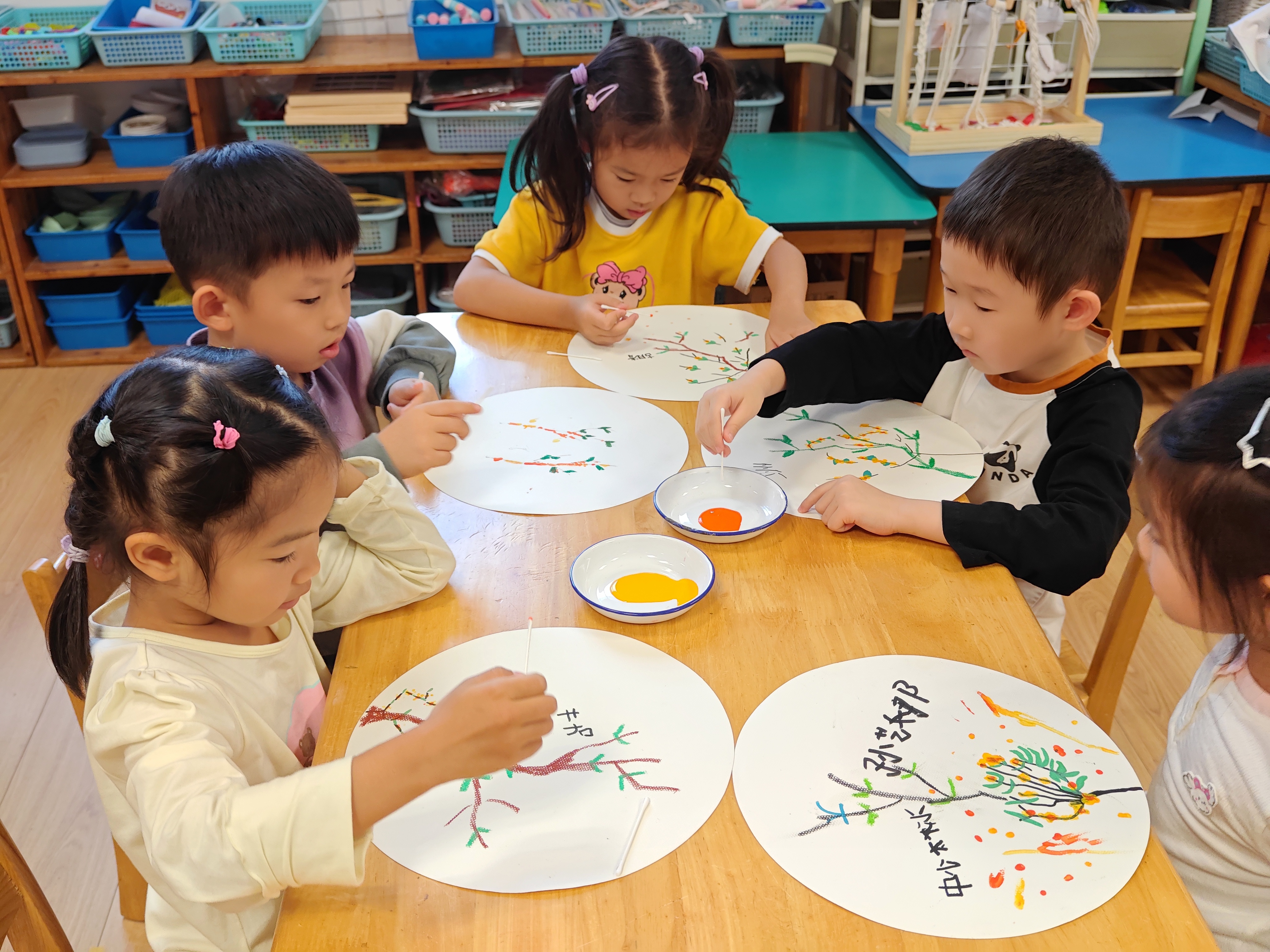 创意画《桂花》:《桂花》创意画则让教室飘满“秋香”,孩子们用棉签蘸取黄色颜料,点画出一朵朵小巧的桂花,稚嫩的笔触下,满是对秋天的喜爱。