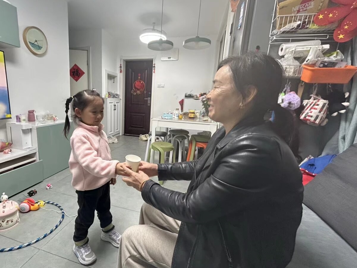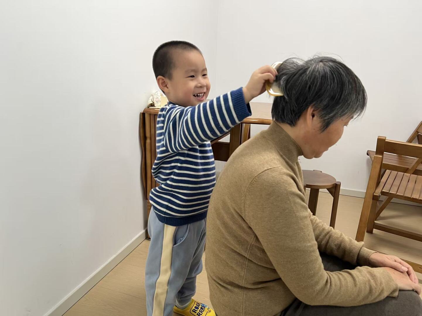 活动最温馨的环节,当属亲子互动。在家长的陪伴与鼓励下,孩子们化身“感恩小使者”,用实际行动表达孝心:有的轻轻为奶奶梳头,有的踮起脚尖为爷爷捶背,还有的孩子双手捧上热茶,道一声“您辛苦了,节日快乐!”