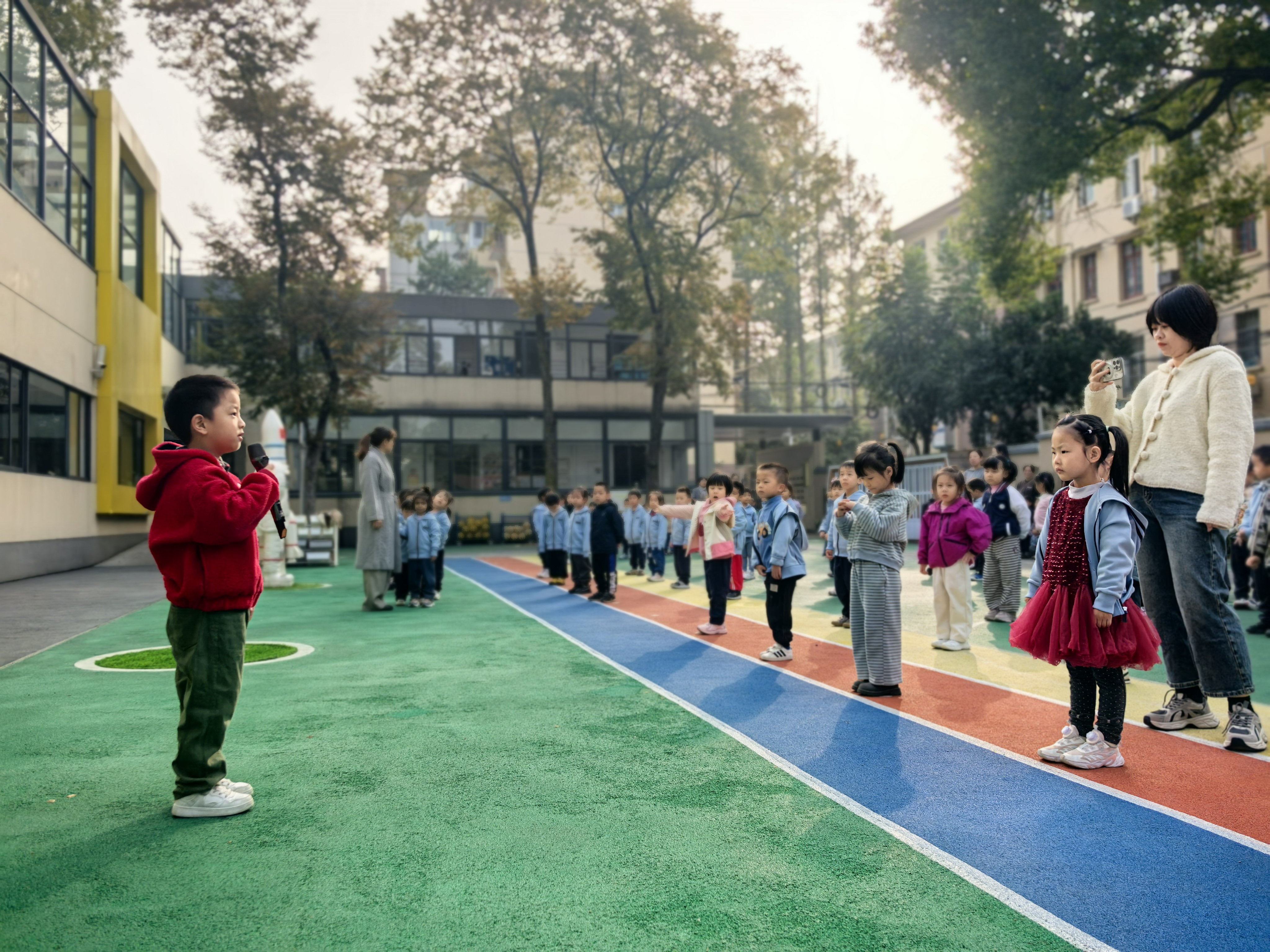 周一晨会上,幼儿园以“重阳”为主题展开特色分享。大一班叶知新介绍重阳节的来历,科普传统知识;大三班耿晨益朗诵与节日相关的古诗,传递文化内涵;小二班幼儿表演儿歌《重阳到》,用童趣表达节日情感,让晨会充满文化韵味与童真气息。