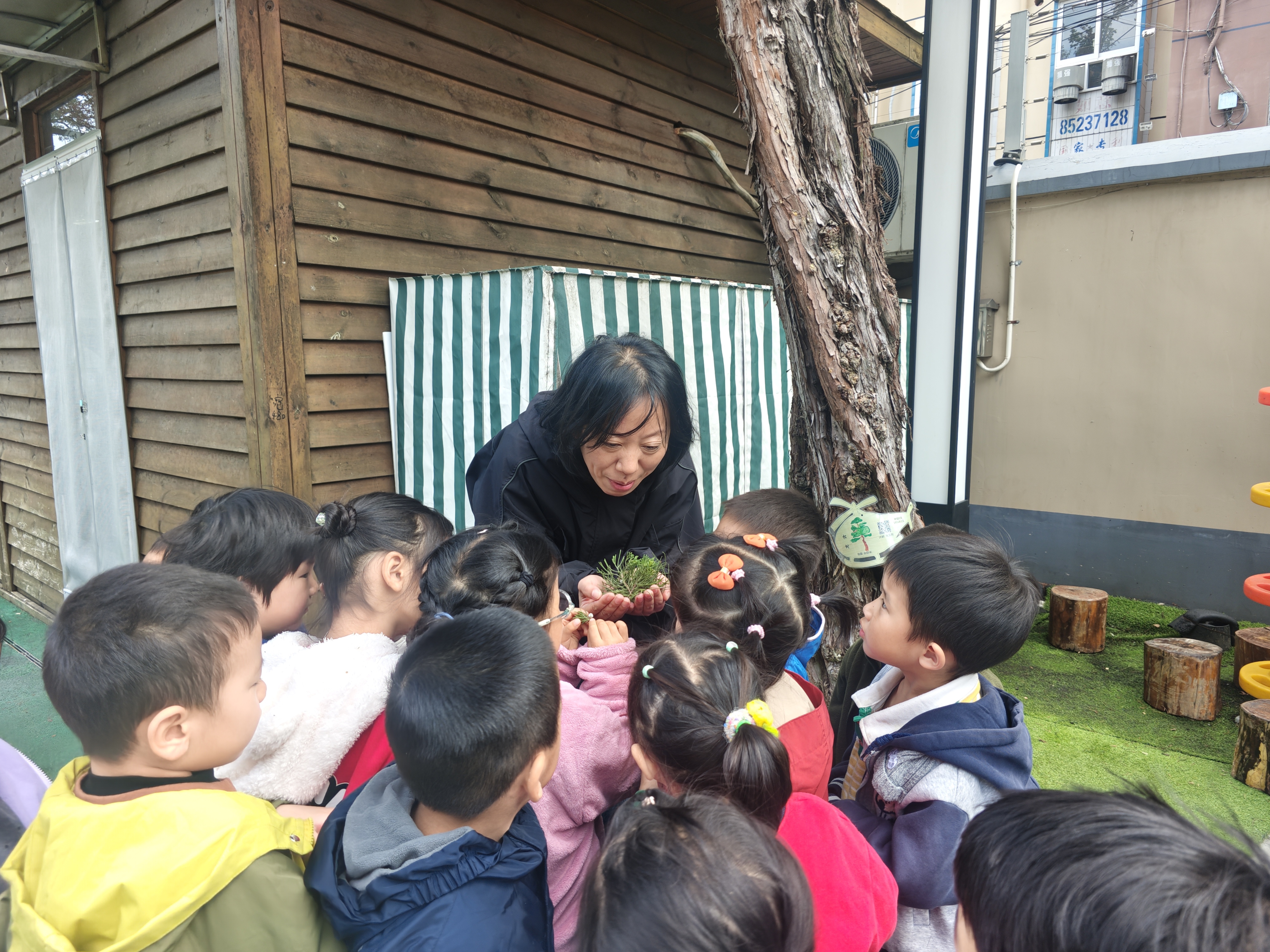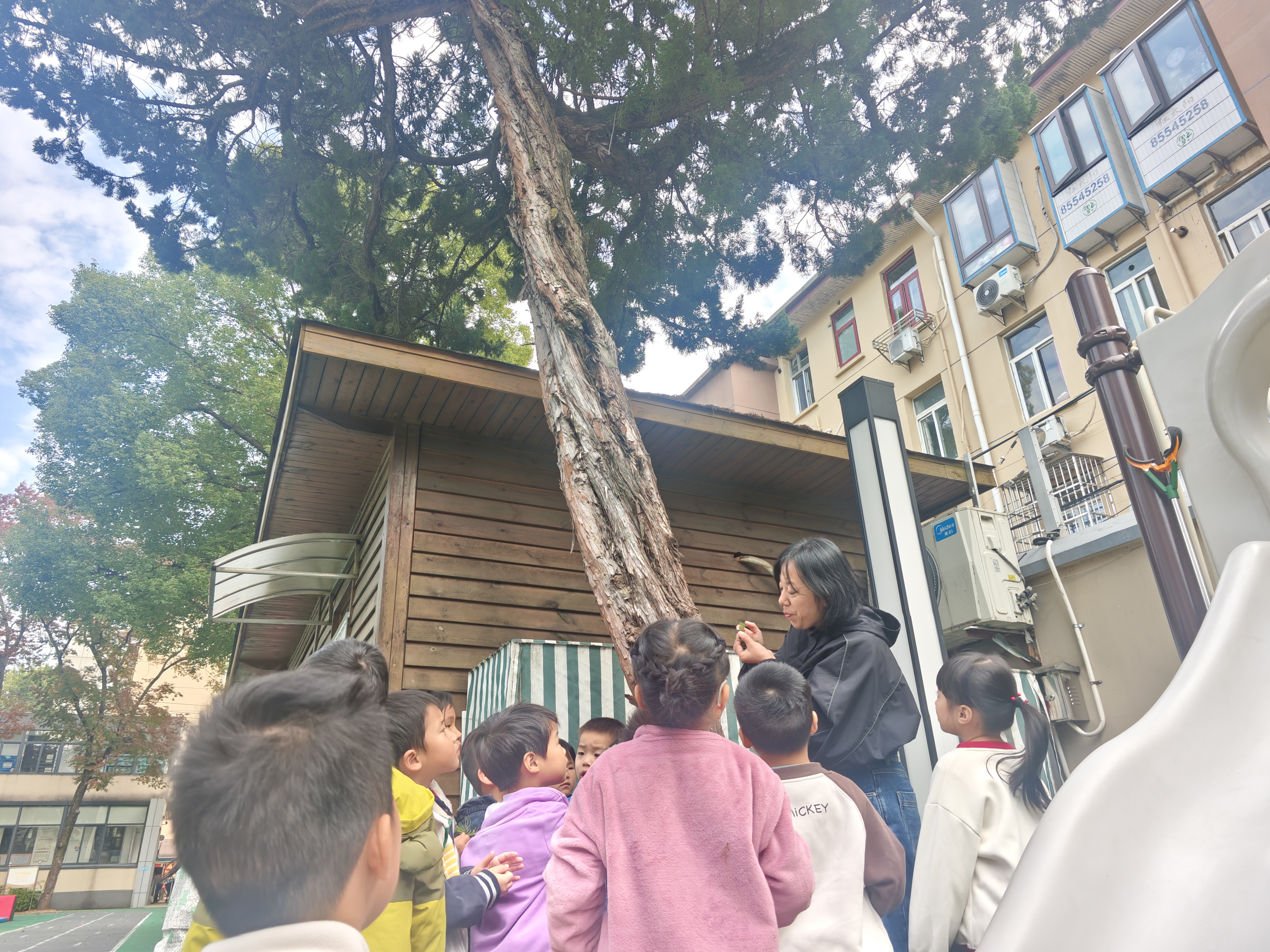 认识松树:“为什么松树冬天还是绿的?”“它的形状为什么像三角形?”带着这些问题,孩子们跟随老师寻找园内的松树,通过观察、触摸、数松针,不仅解开了心中疑惑,也激发了主动探索的欲望。