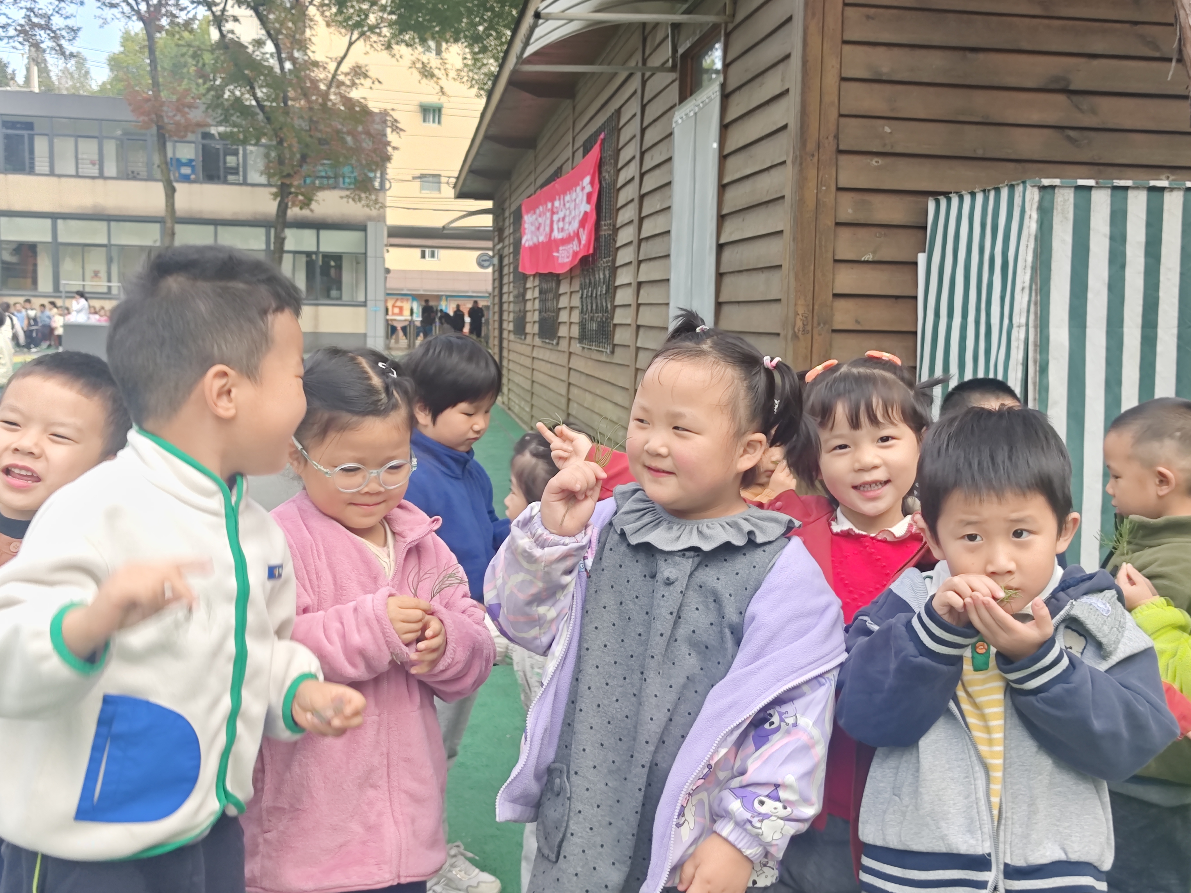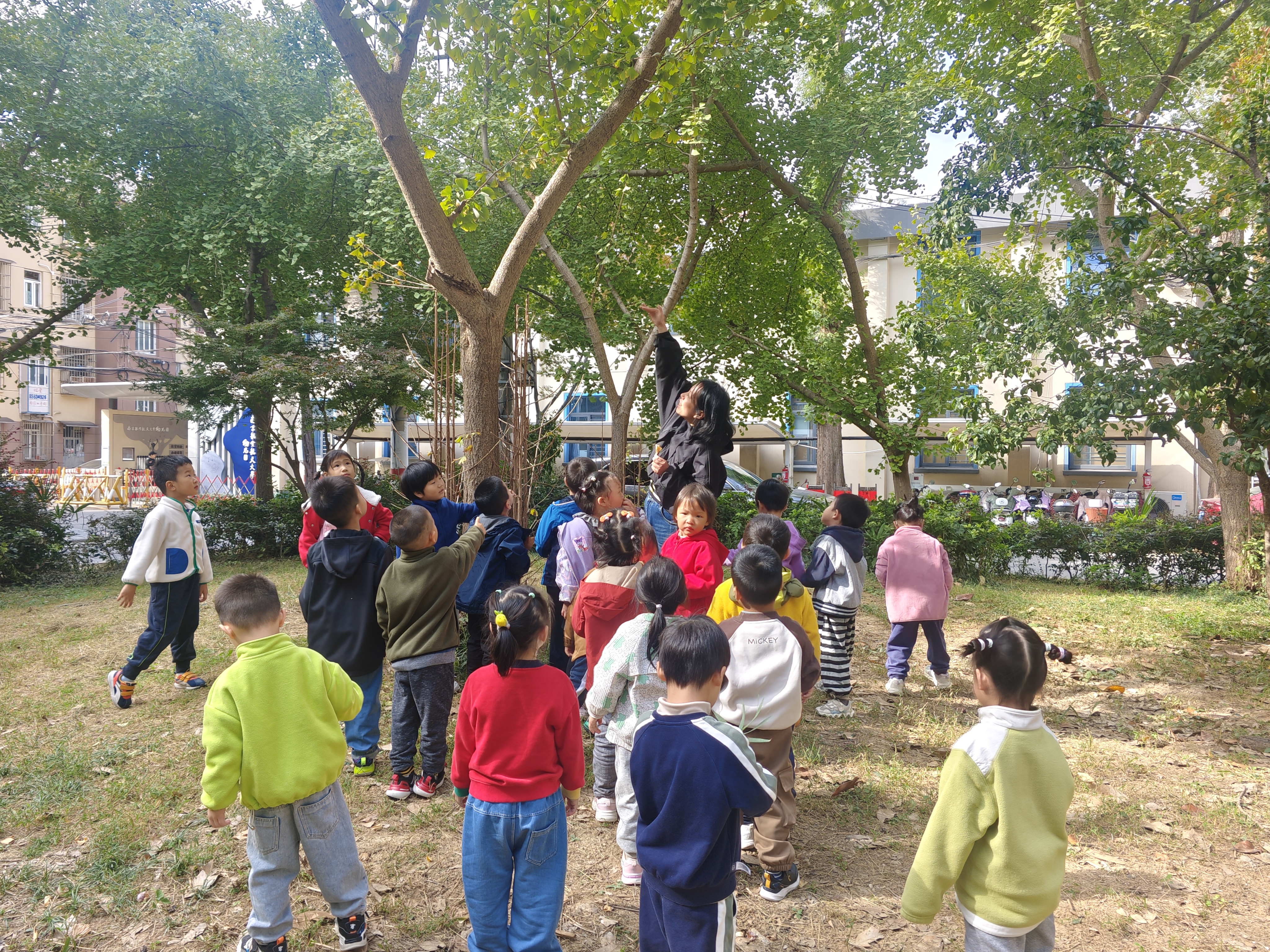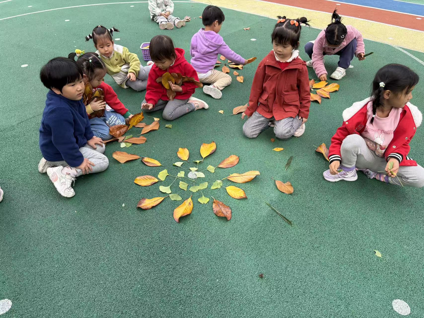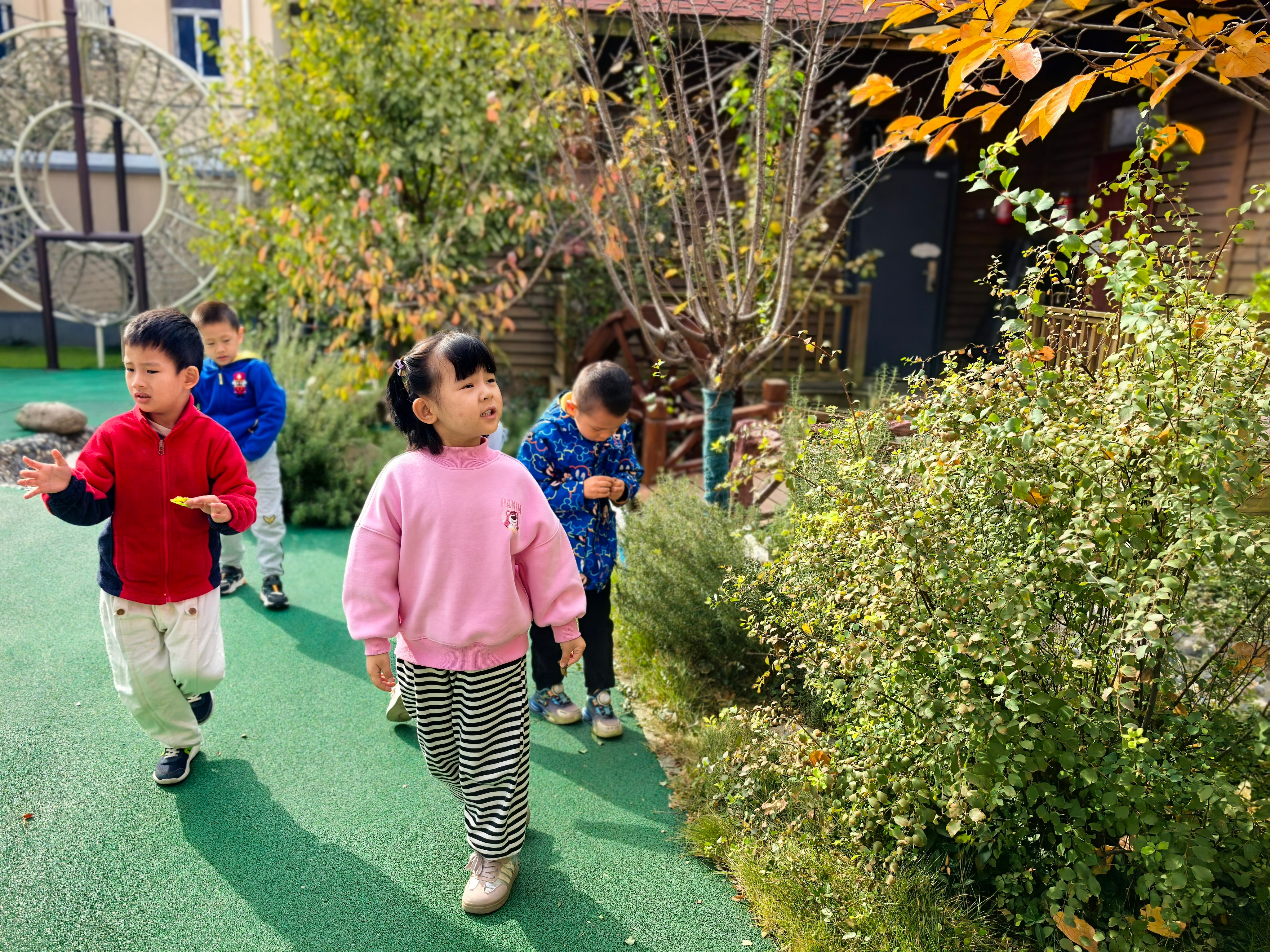 秋冬交替之际,园内的树叶纷纷飘落,铺成一片黄绿交织的“地毯”,成为孩子们探索自然的绝佳素材。
