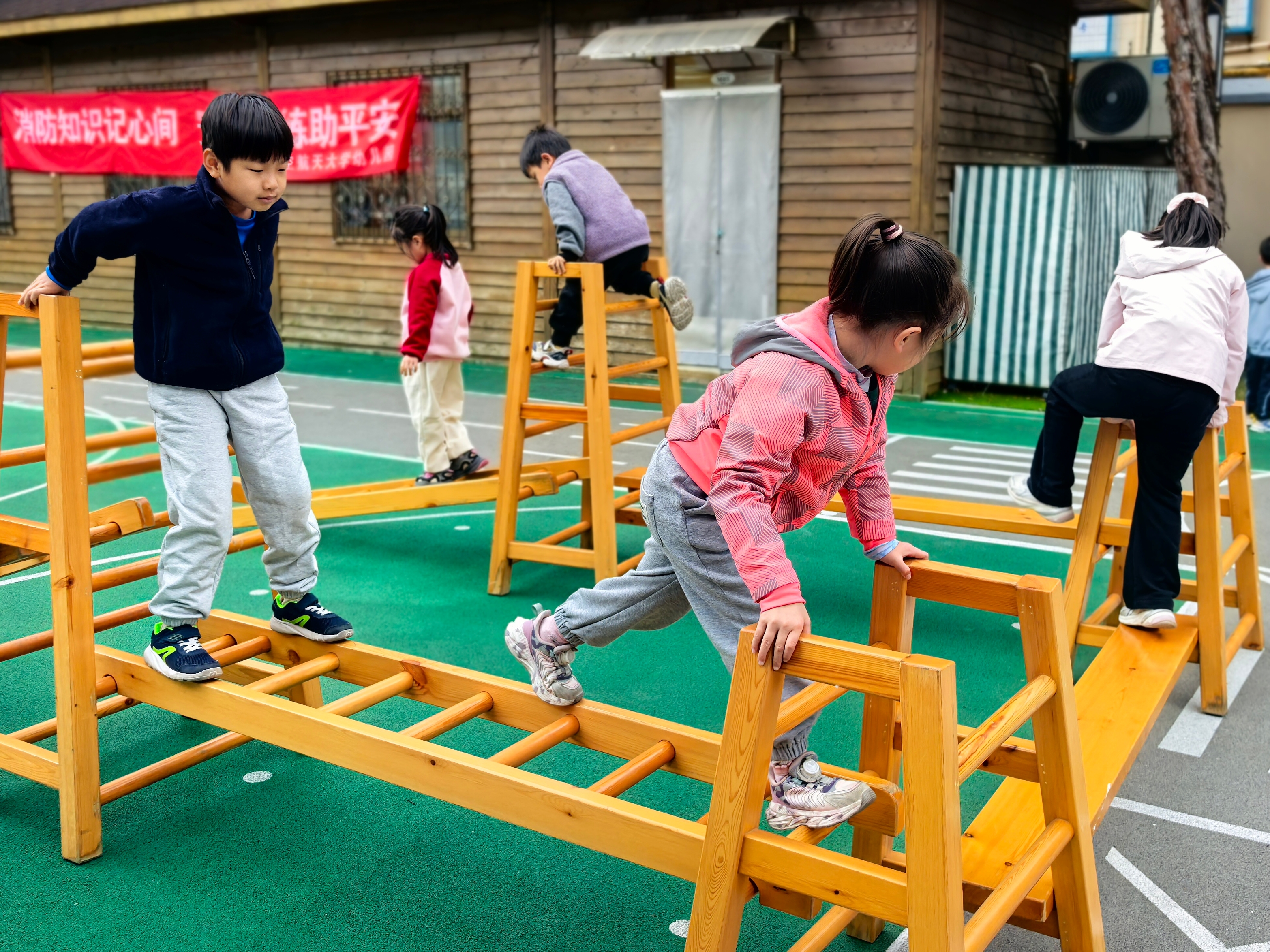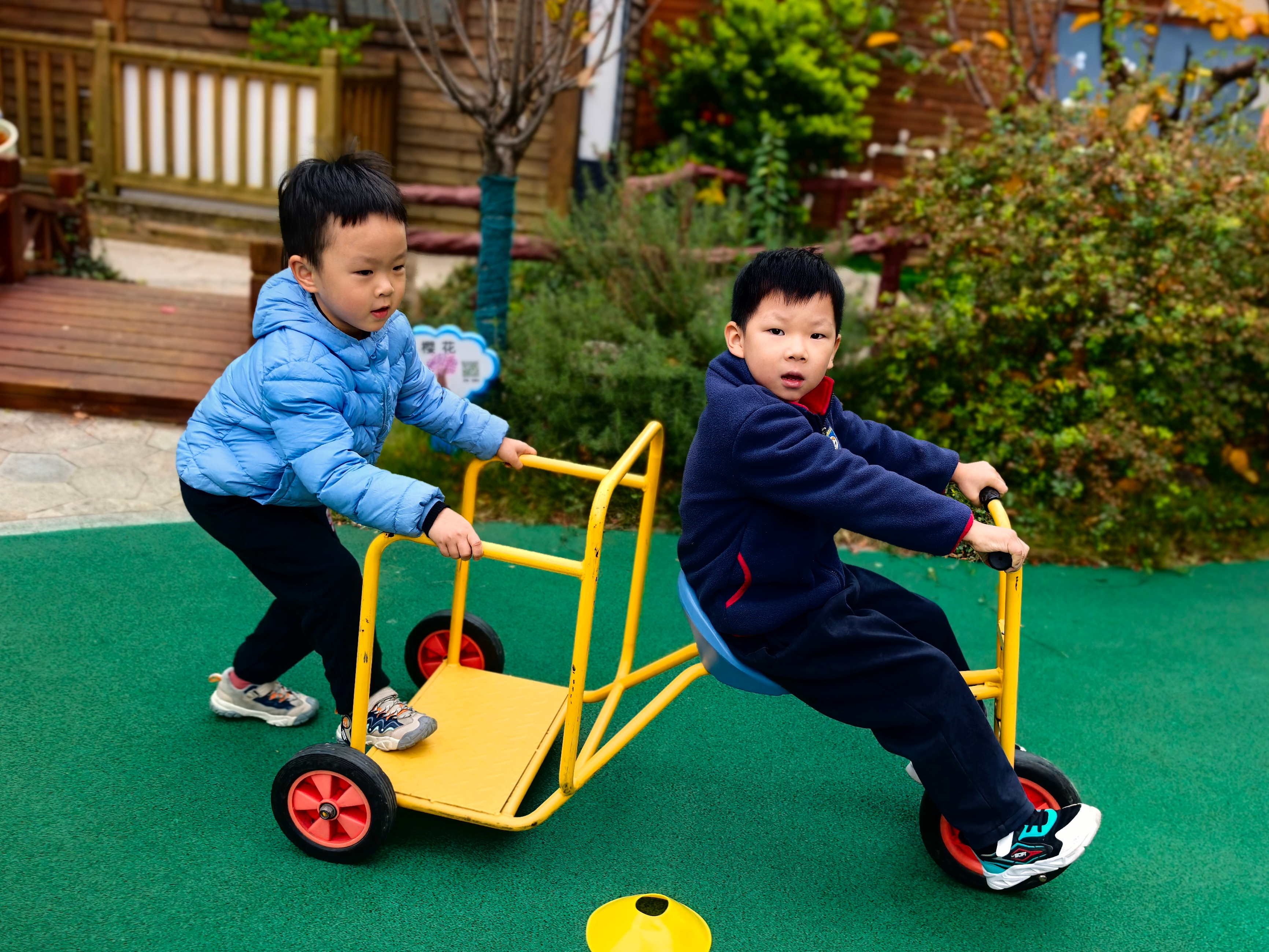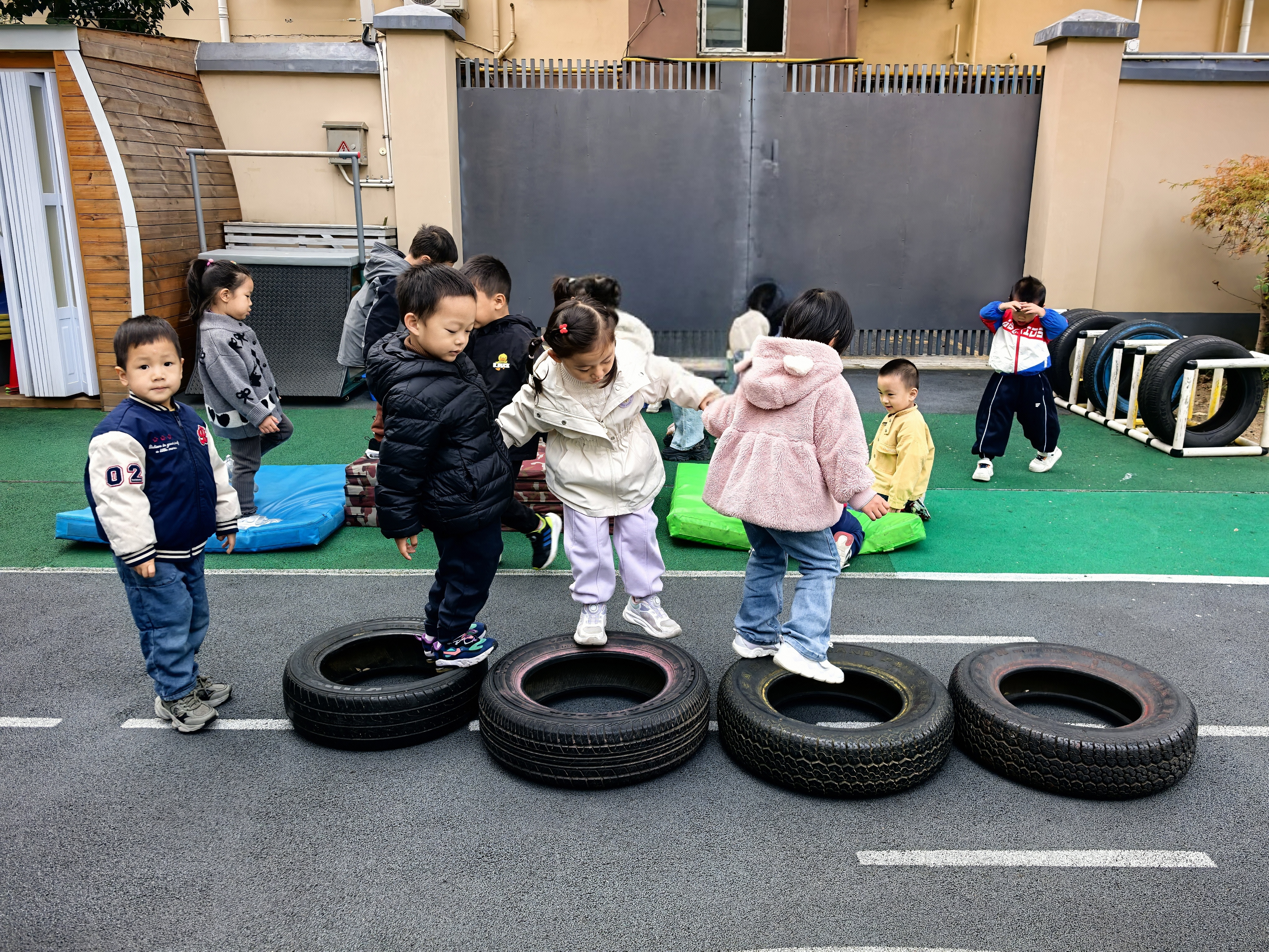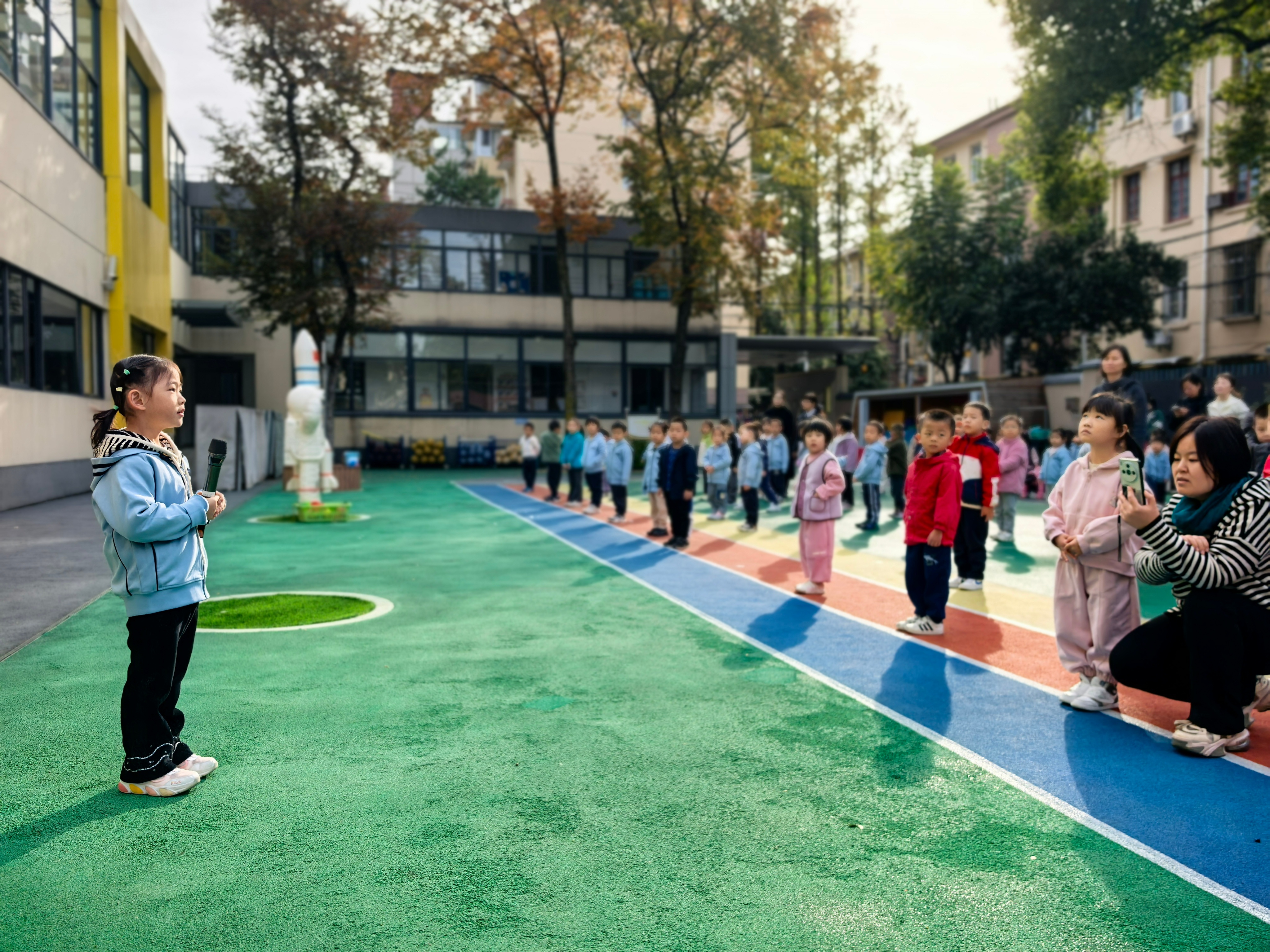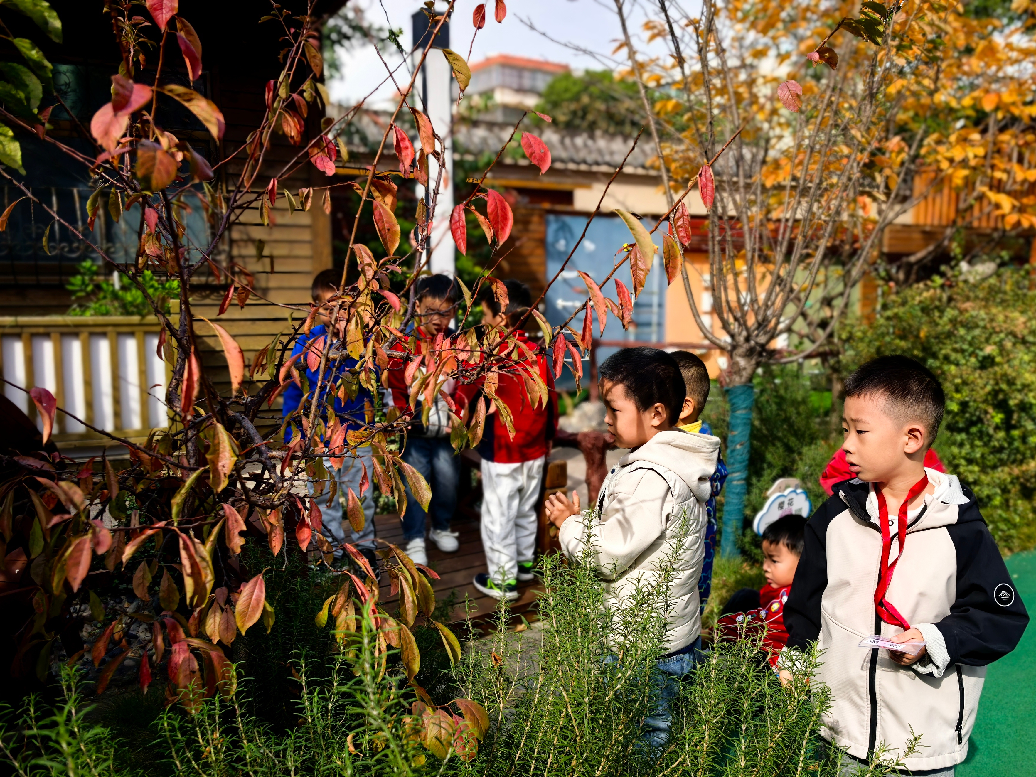秋冬交替之际,园内的树叶纷纷飘落,铺成一片黄绿交织的“地毯”,成为孩子们探索自然的绝佳素材。