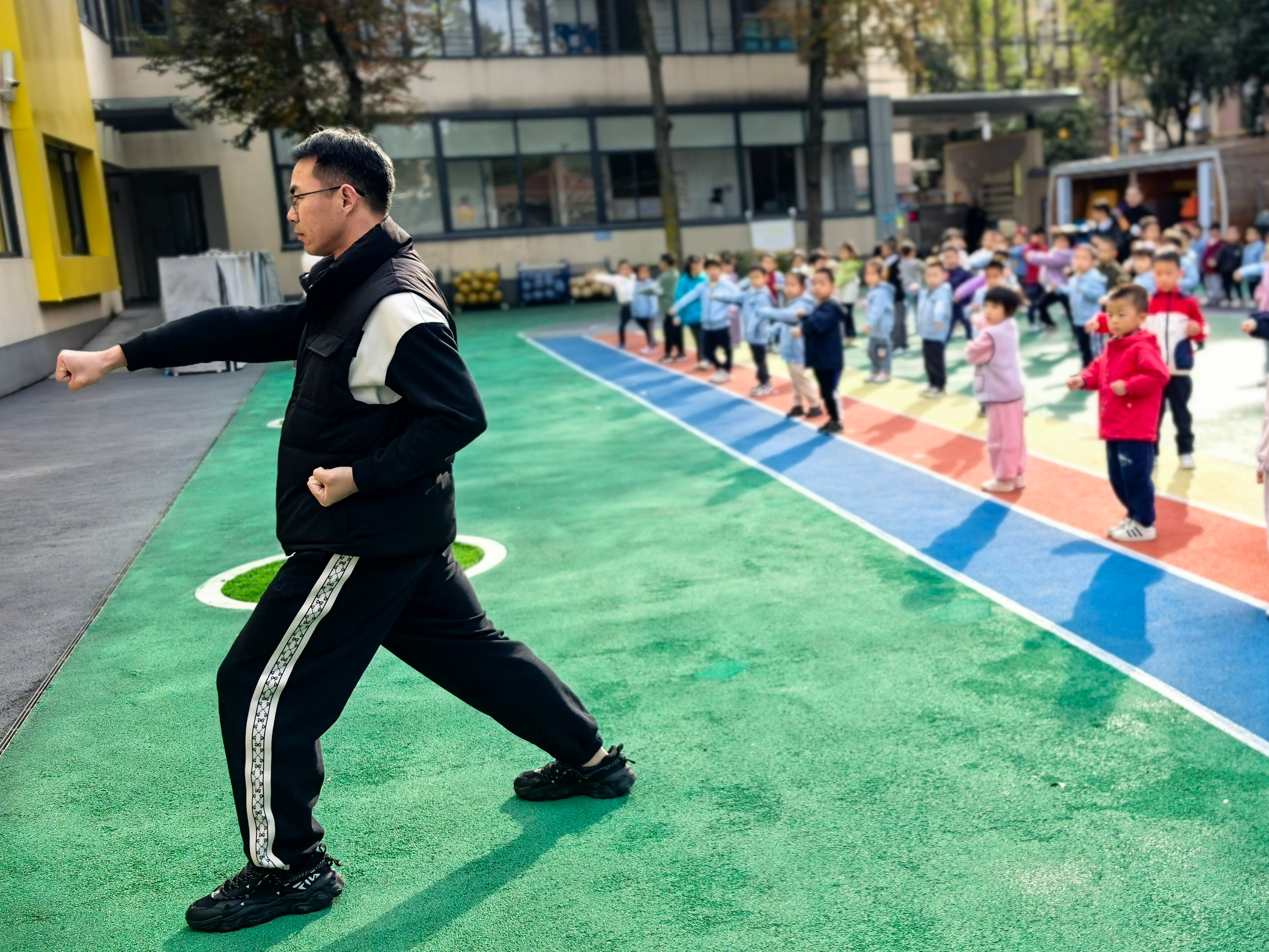 随着立冬的到来,天气逐渐变冷。幼儿园邀请体智能老师带领孩子们学习太极操,在一招一式的模仿中,孩子们不仅锻炼了身体,也懂得了“运动防寒”的生活常识。老师们不仅和孩子讨论了防寒的方法,还组织孩子们进行拍球、跳绳等多种体育活动。大家在运动中舒展身体、释放活力,真切体会到“动起来,不怕冷”的快乐。