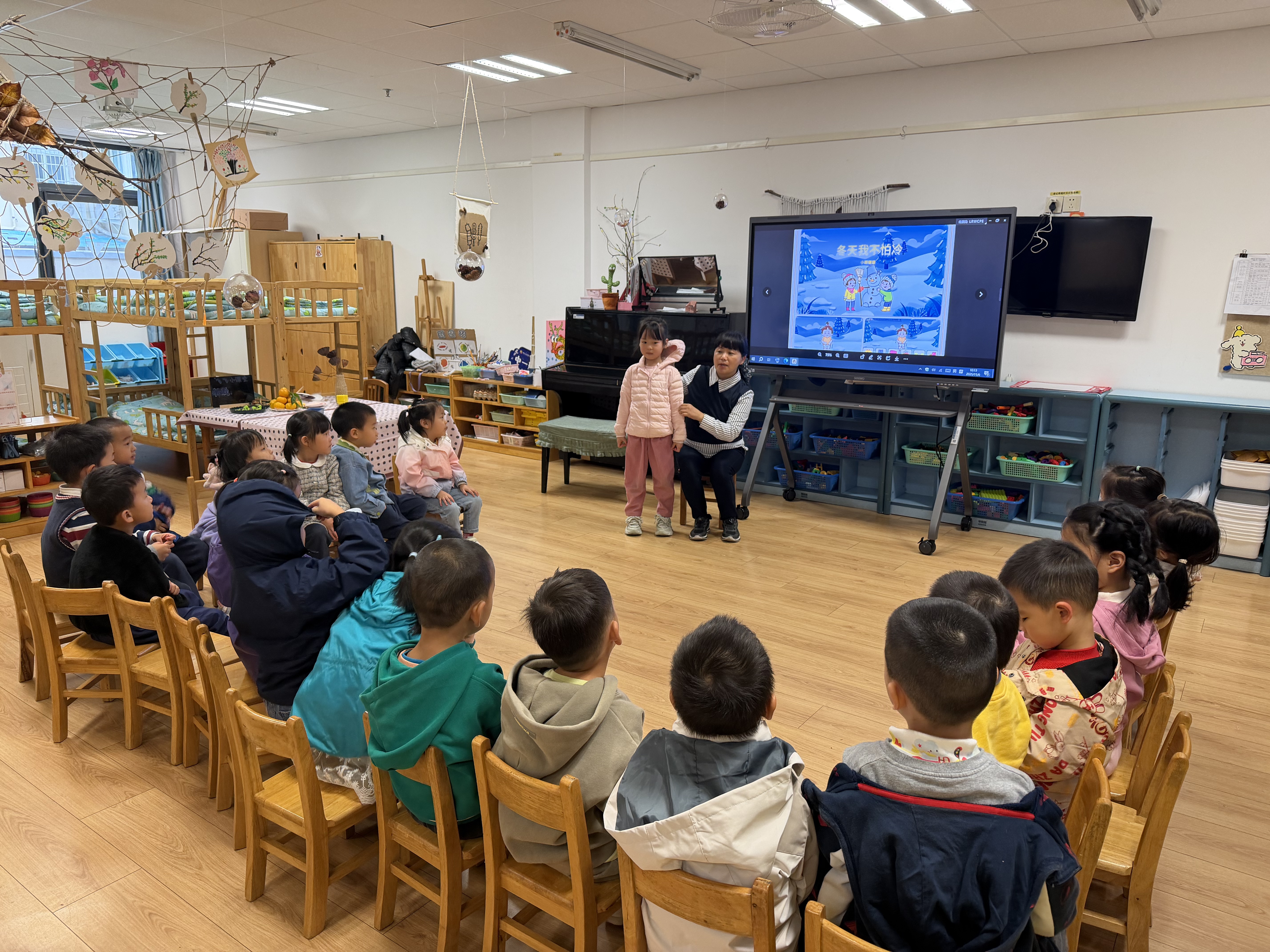 周一晨会上,大三班孟元荻小朋友向大家介绍立冬的相关知识,小朋友们在倾听中初步了解到立冬不仅是冬天的起点,更承载着丰富的民俗与传统。
