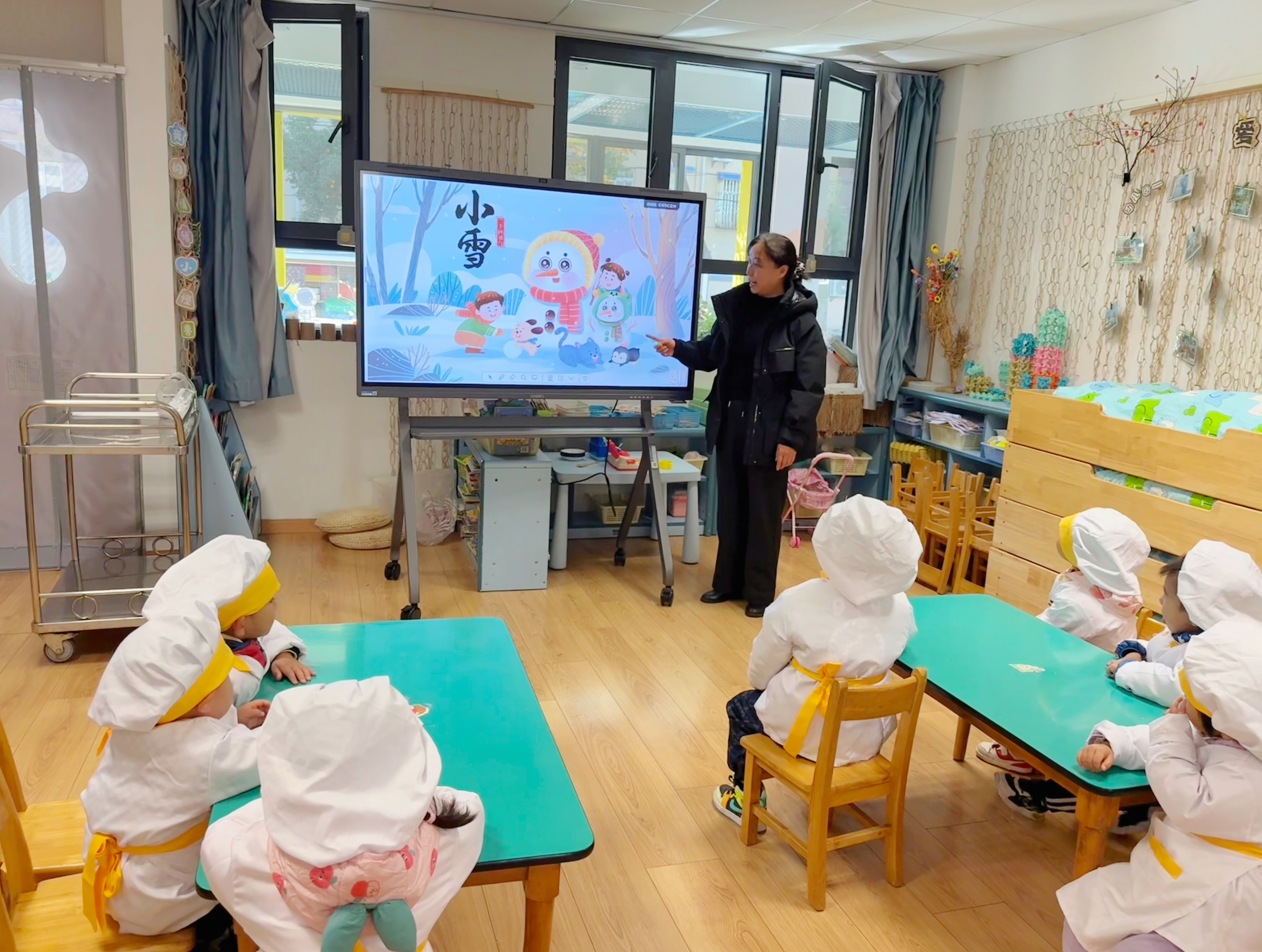 老师们通过各种形式向孩子们介绍小雪节气的由来、物候特点与传统习俗。孩子们认真聆听冬藏的智慧,感受着节气文化的深厚底蕴。