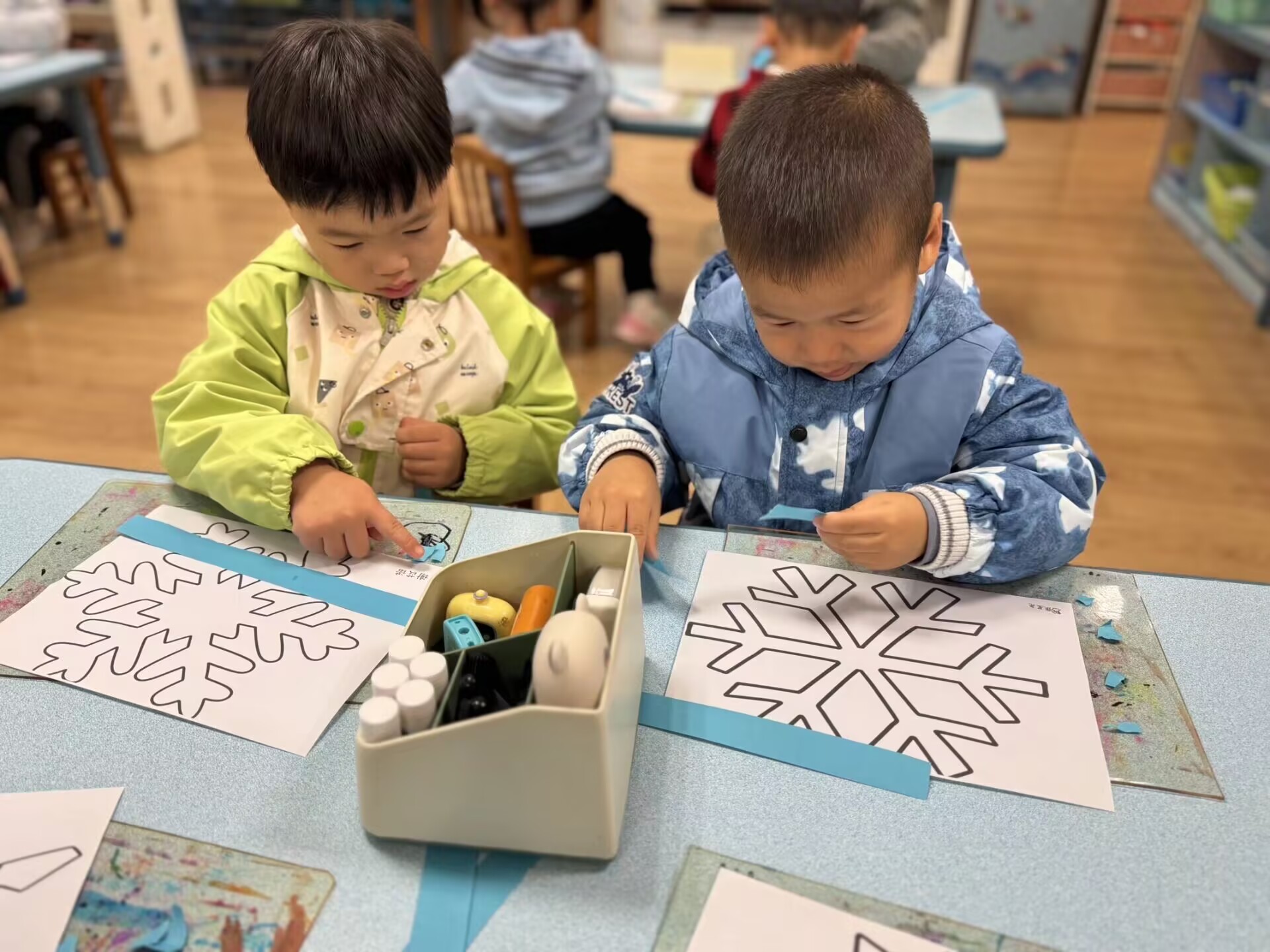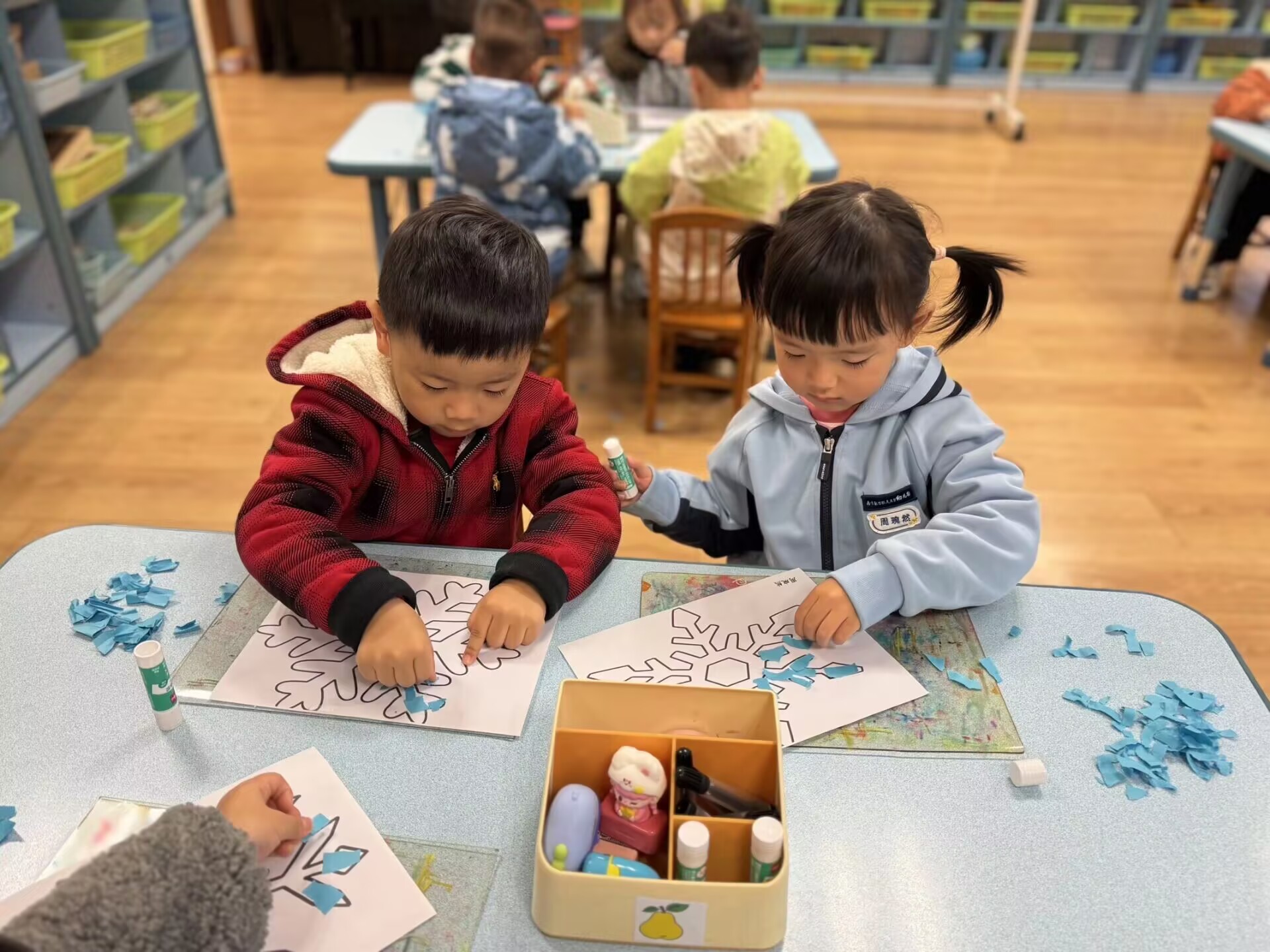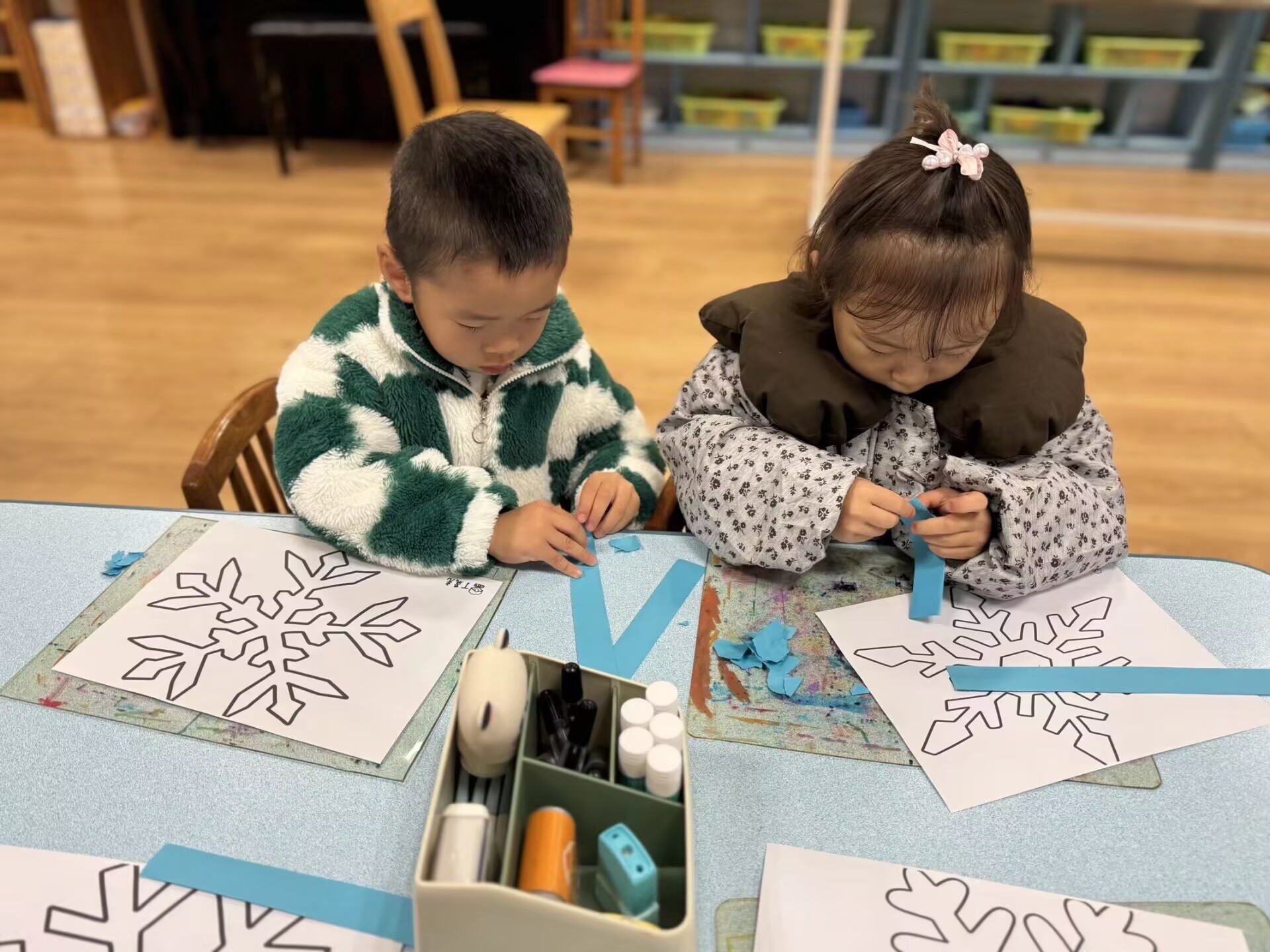小雪未必有雪,却藏着无限浪漫。孩子们拿起彩纸、胶水,用撕贴的方式将对雪花的期盼藏进斑斓的作品里。一片片“雪花”在指尖绽放,一场与小雪的浪漫邂逅,在创意中悄然上演。