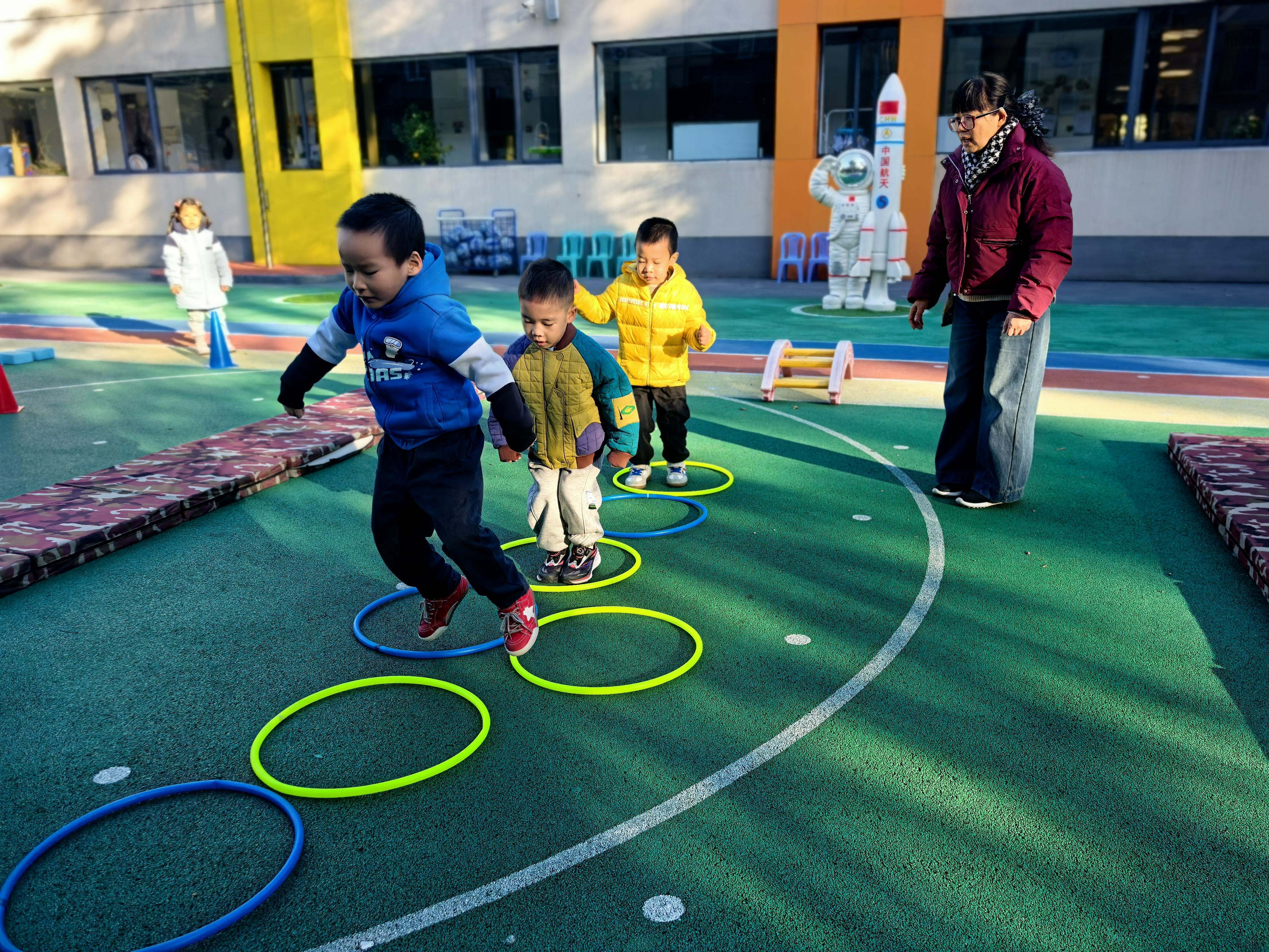 寒意渐浓,却挡不住孩子们的活力。幼儿园的操场上,孩子们坚持户外体能锻炼,跑跳嬉戏间释放着童真,在暖阳中积蓄抵御严寒的力量,尽情享受着初冬的美好时光。