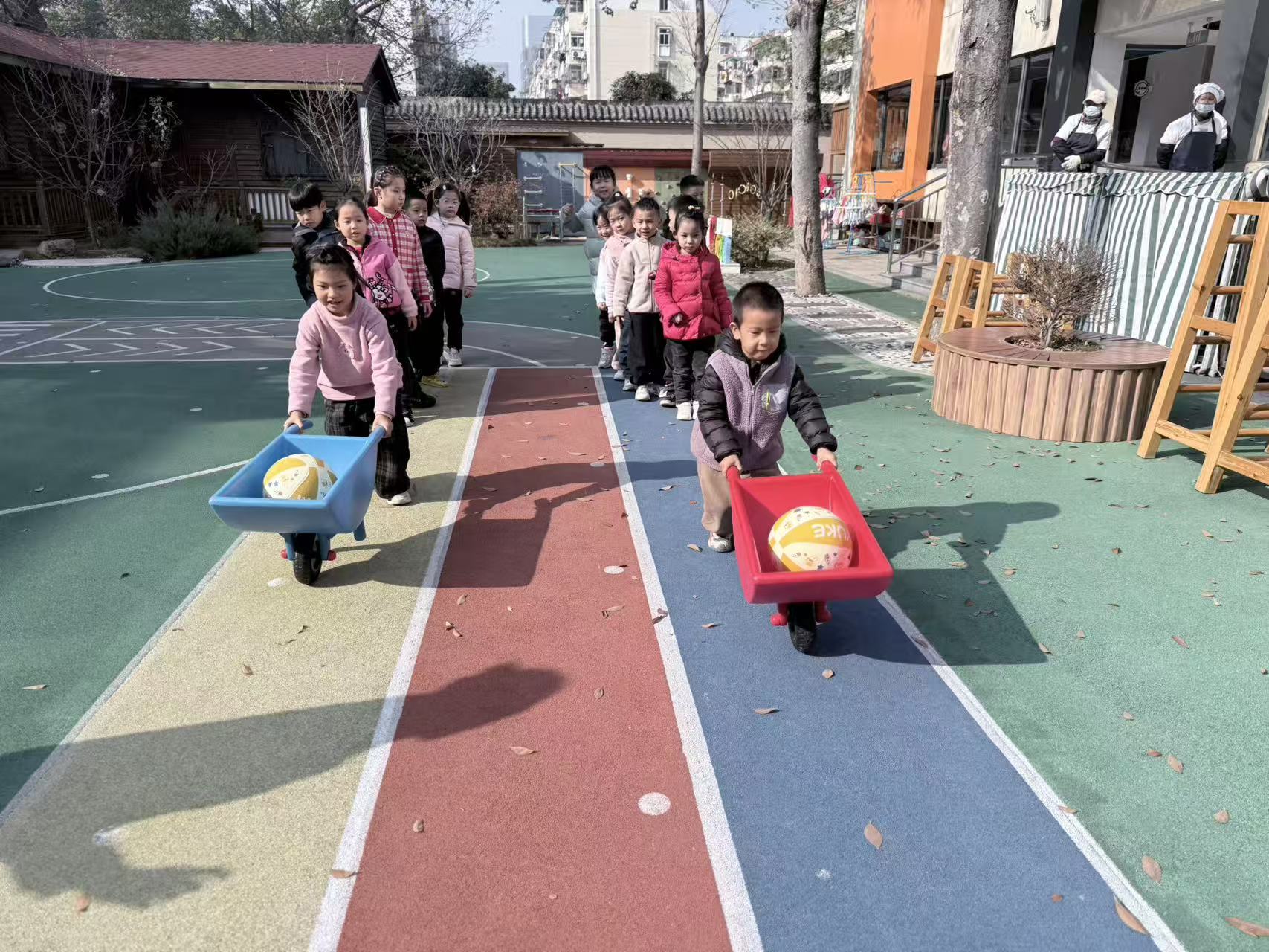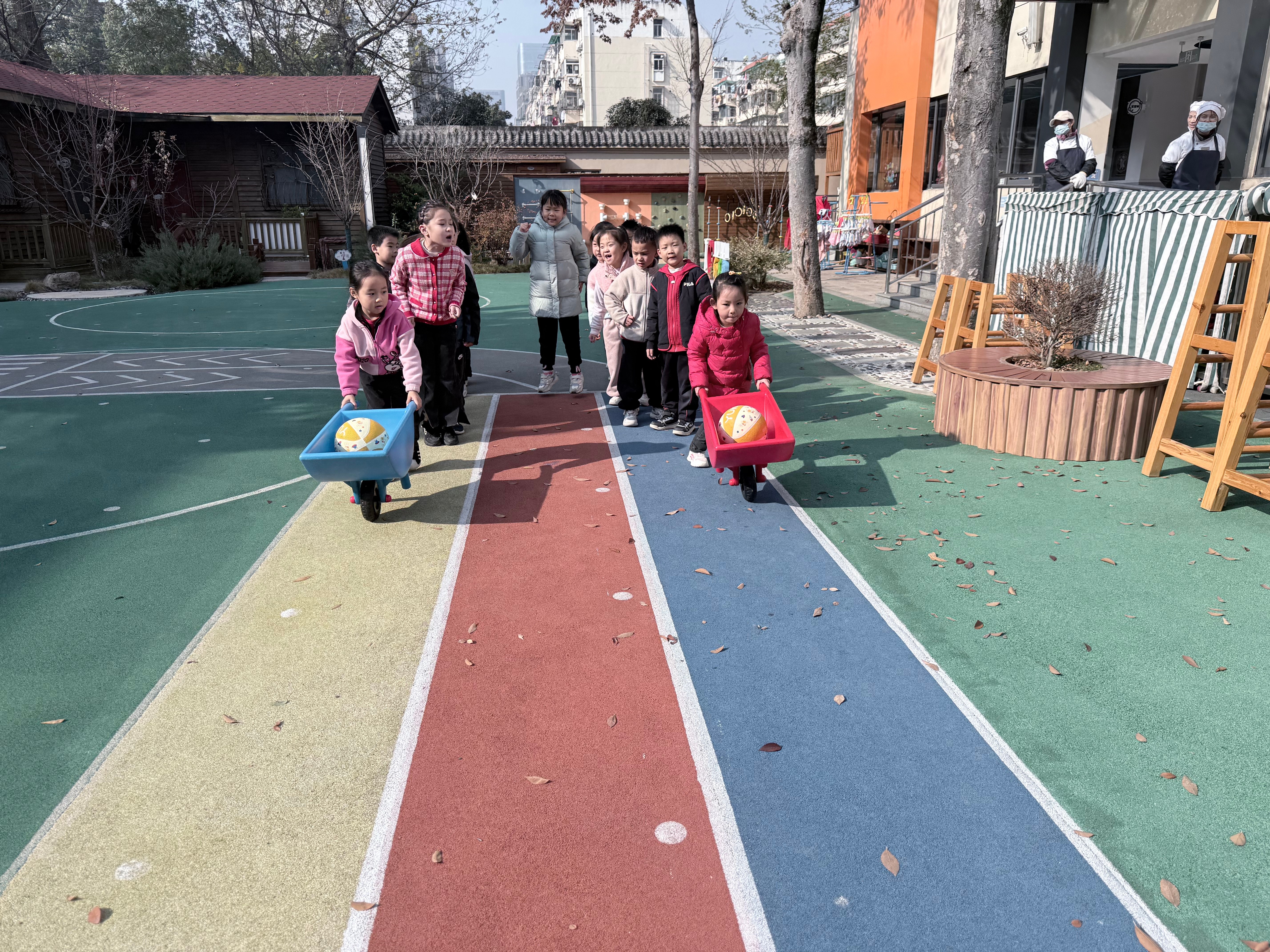户外操场上,“滚雪球接力赛”火热进行,孩子们分组协作、奋勇争先,在奔跑传递与呐喊助威中强健体魄、增强团队意识,欢声笑语驱散了冬日的寒意。