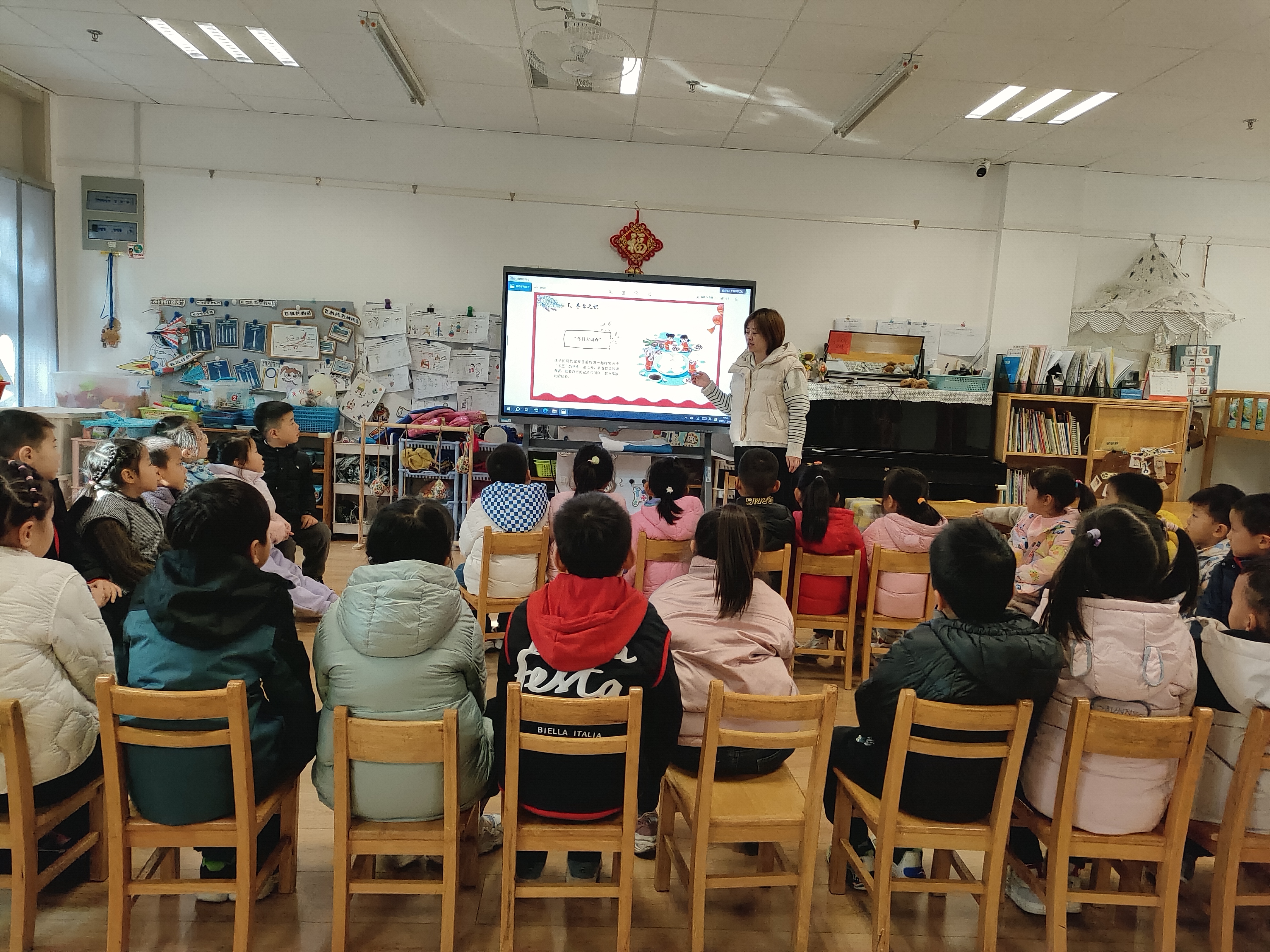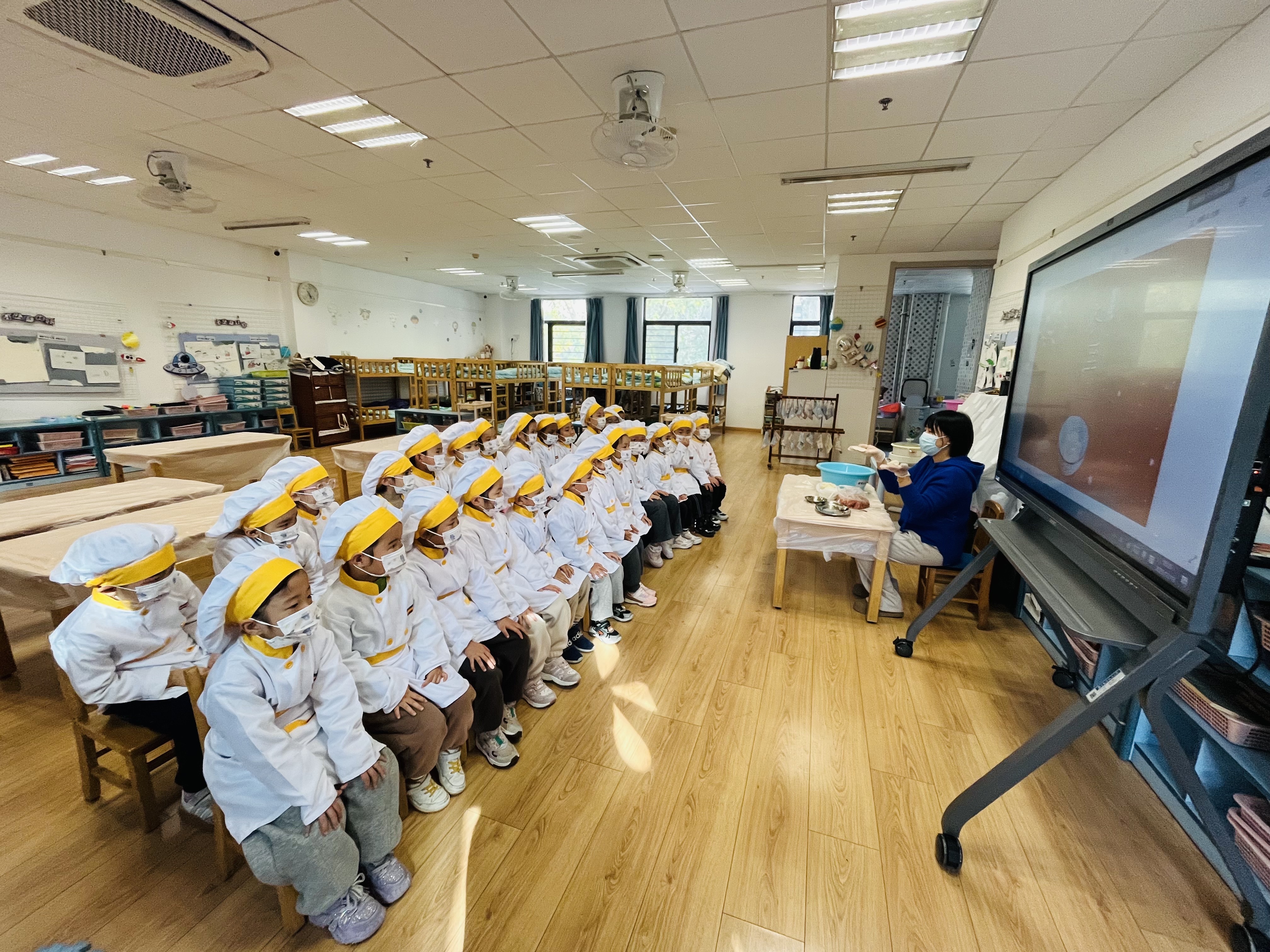 当《冬至到》的欢快儿歌响起,孩子们跟随教师学习手势舞,在轻快的韵律中加深对习俗的记忆,沉浸式感受节气活动的愉悦氛围。